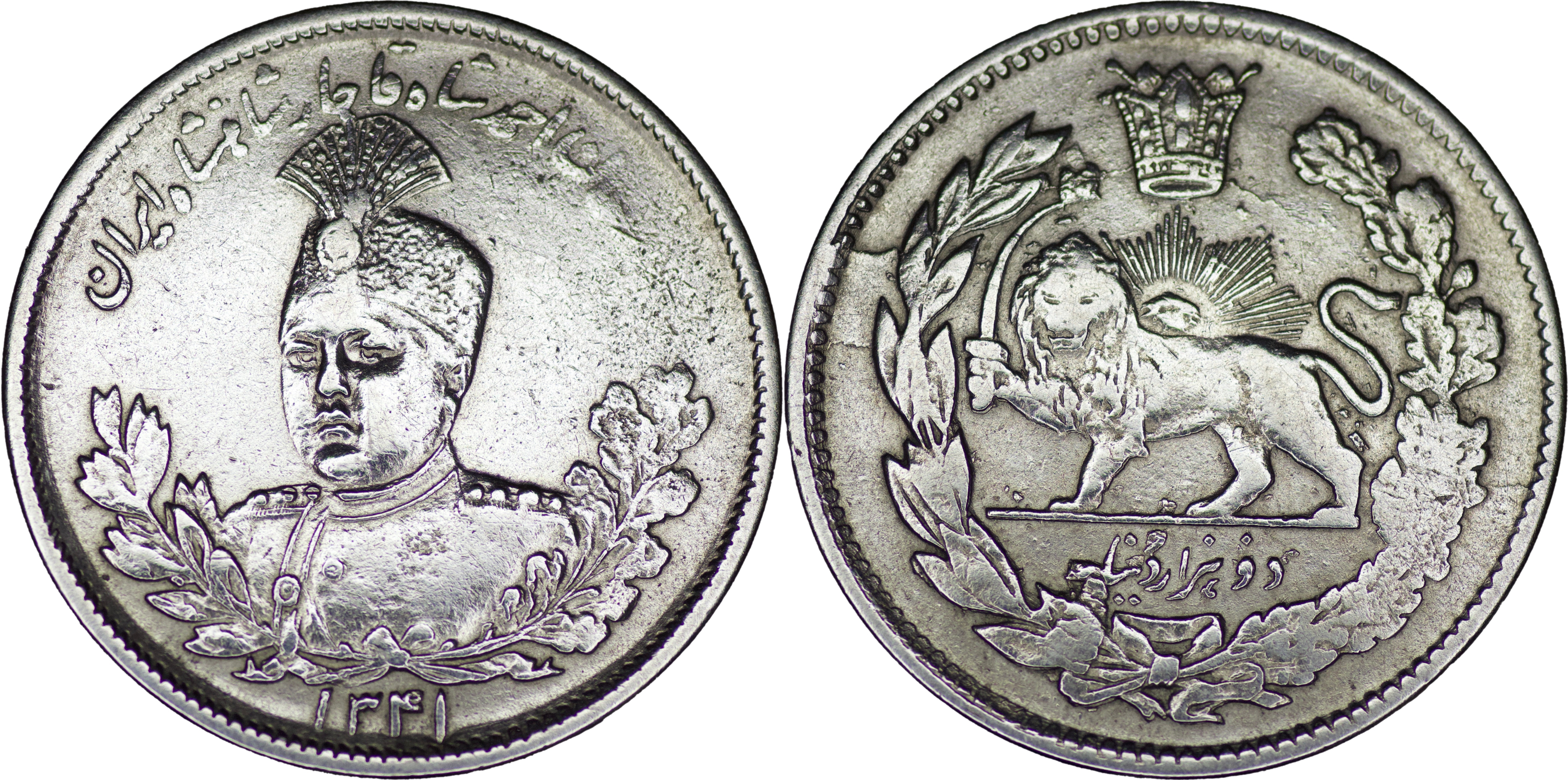 Qajar. Ahmad Shah (1909-1925). Silver 2000 Dinar. AH 1341