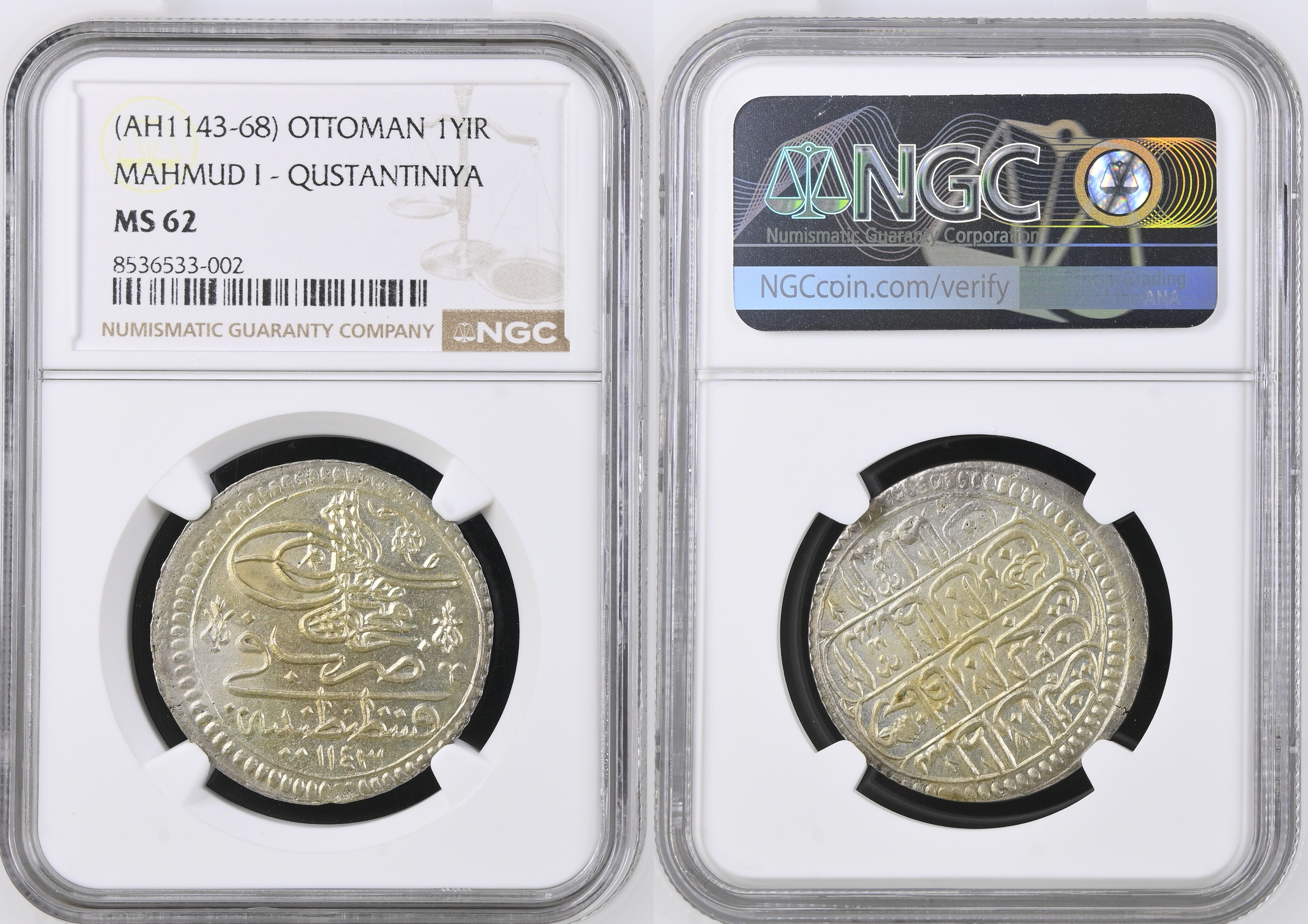 Ottoman Empire. Mahmud I (1730-1745). 1 Yirmilik. Qustantiniya. NGC Graded MS 62.