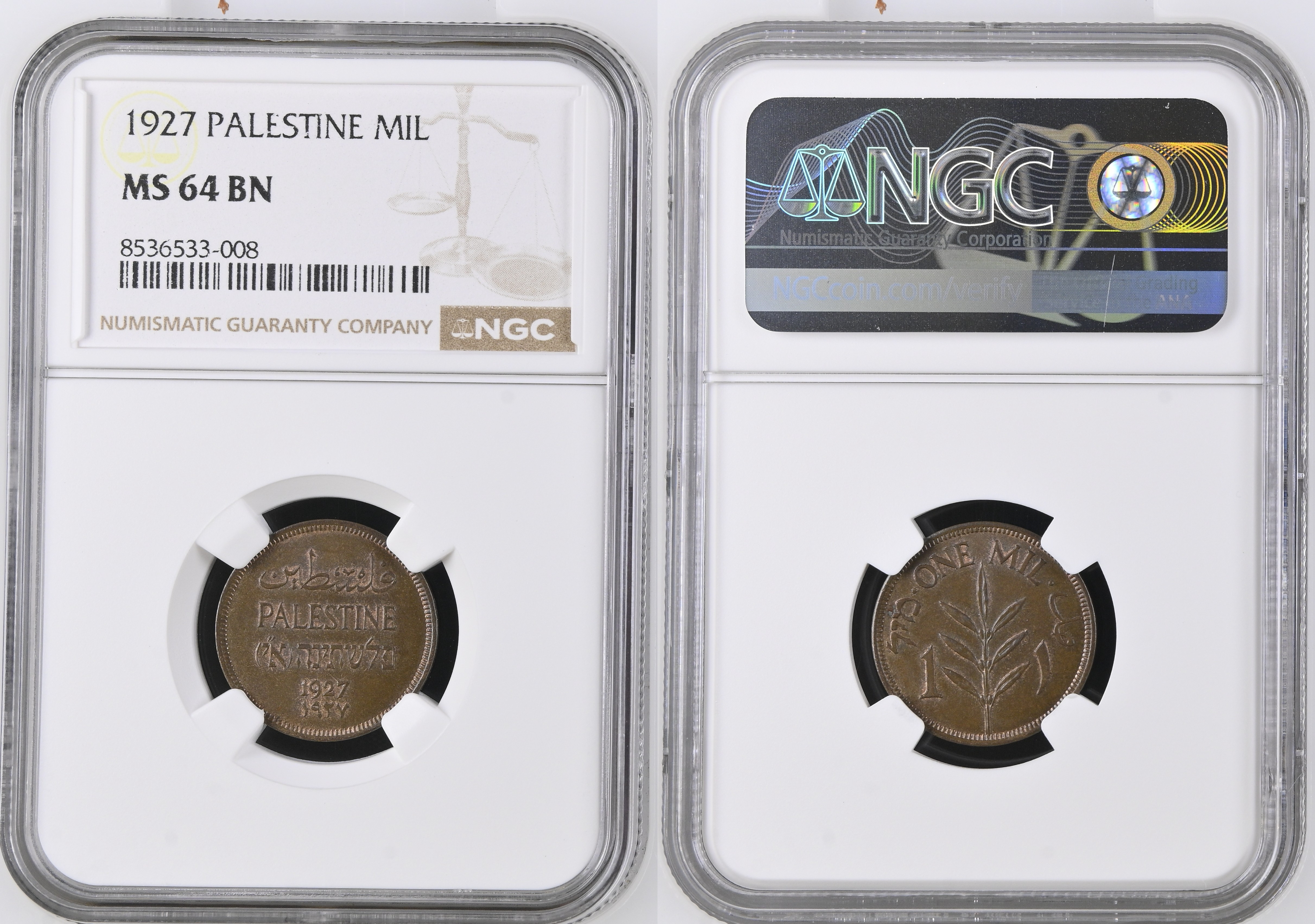 British Mandate of Palestine. 1 Mil. 1927. KM 1. NGC 64BN.