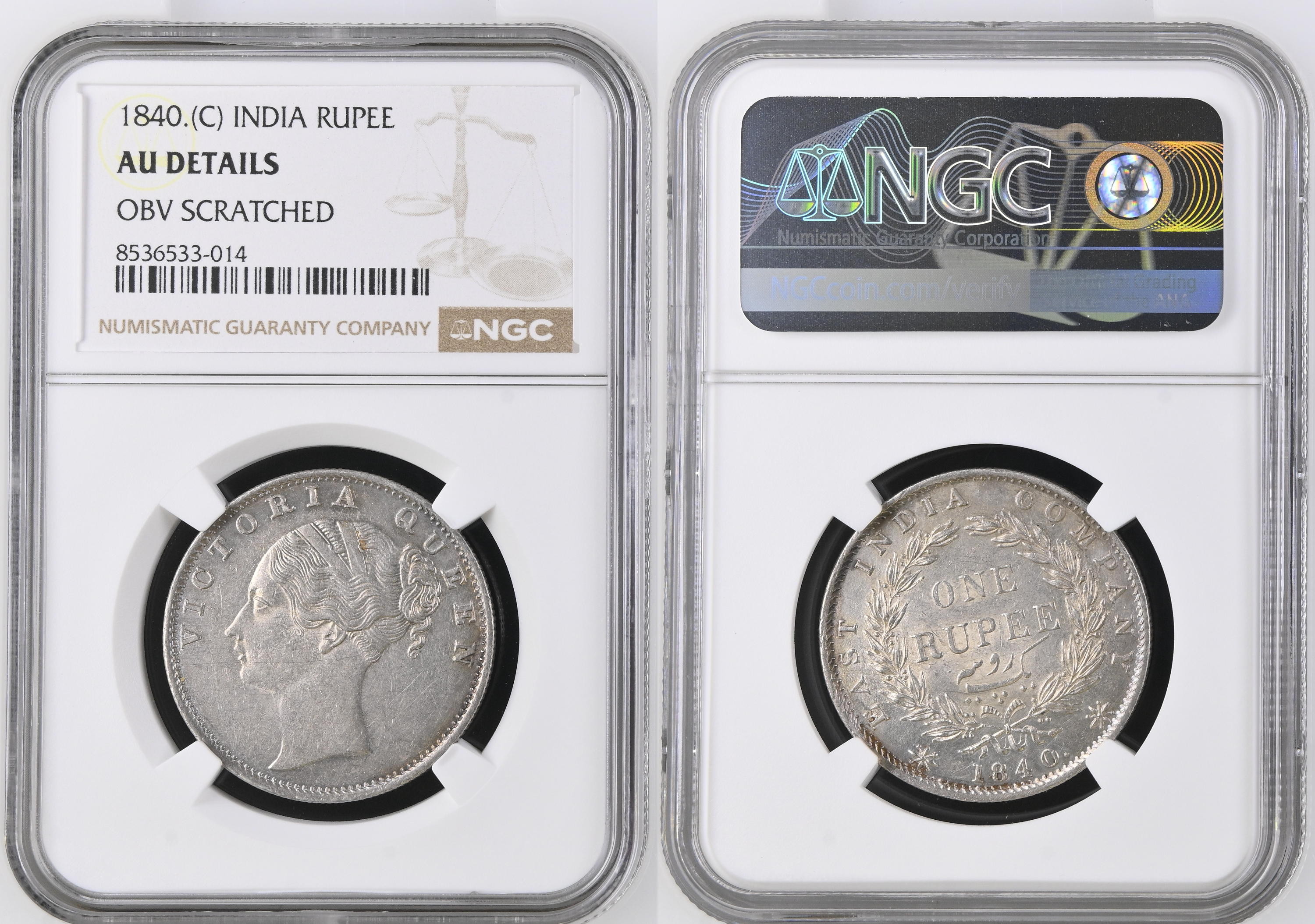 British-India. 1 Rupee. 1840 C. KM 457. NGC AU Details.