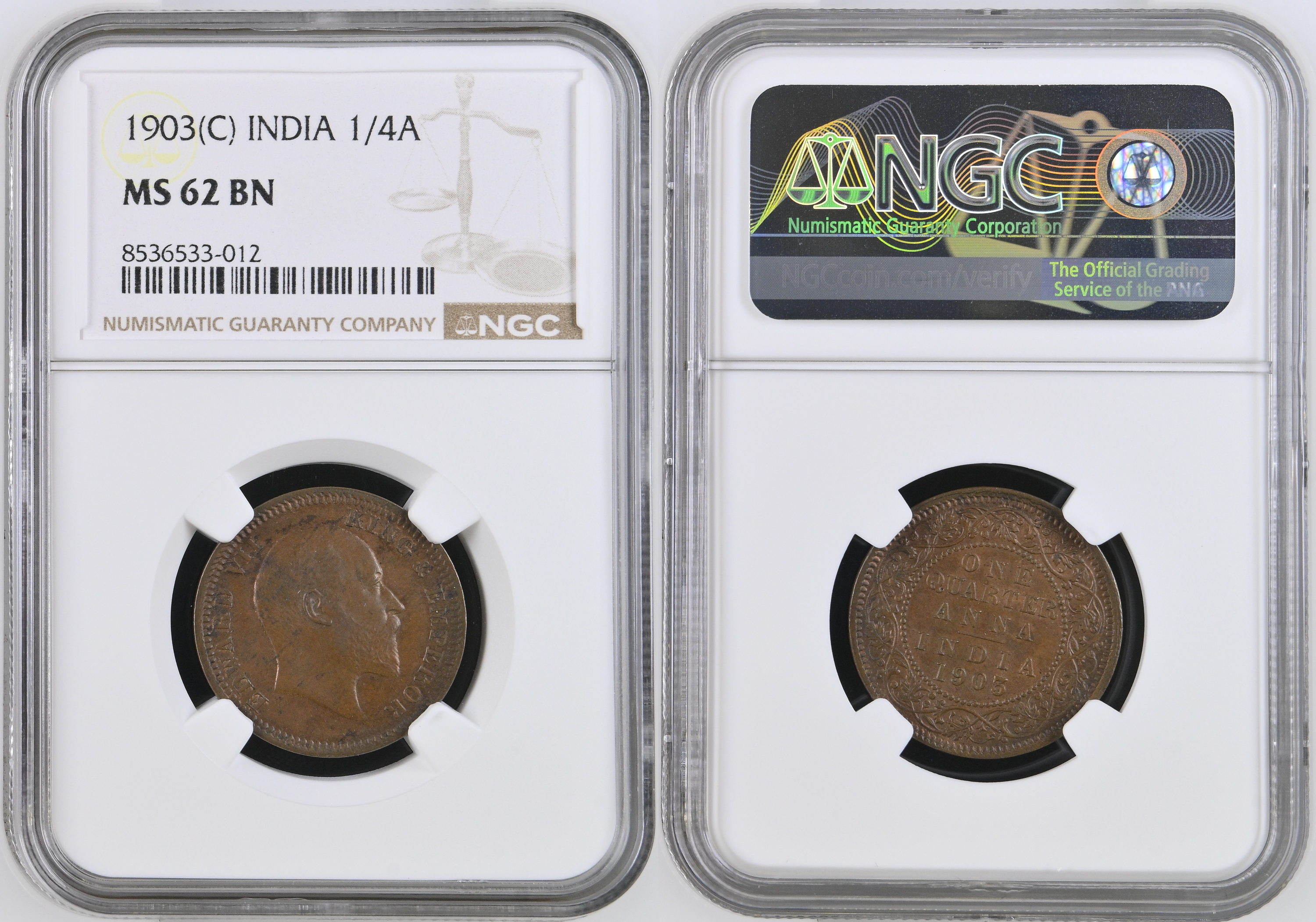 British-India. 1/4 Anna. 1903 C. KM 501. NGC MS 62BN.