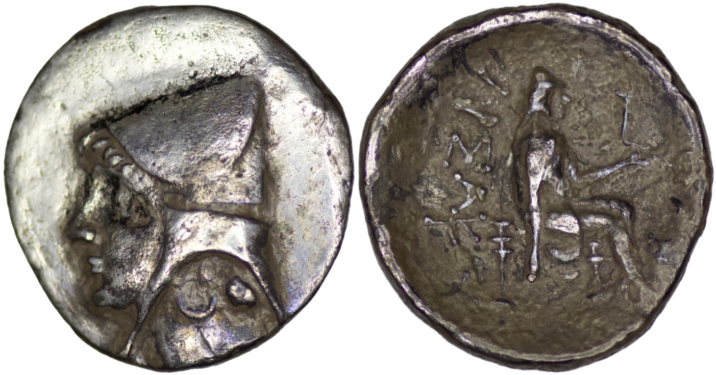 Parthian Empire. Arsakes II (211-191 BC). AR Drachm ( 3.9g/18mm). Struck circa 209 BC. Head left wearing bashlik / ARSAKOU, Arsakes I seated right on backless throne, holding bow; eagle below bow. Sellwood 6.1. Very fine, original patina.