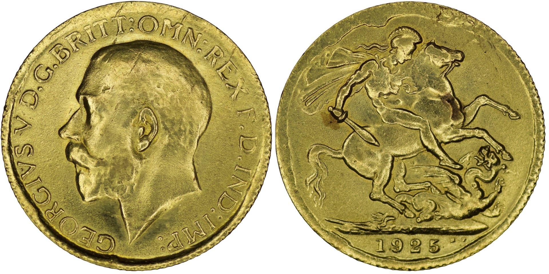 4.5% BP- United Kingdom. George V. Replica gold Sovereign (tested .916). 1923