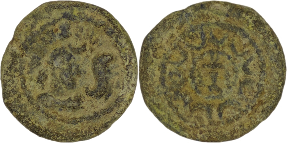 Sasanian Empire. Yazdigerd I (399-420 AD). Lead Pashiz (2.86g/ 15mm). Standard royal bust, with Pahlavi symbol to the right/Tiny fire altar & two attendants in the centre, ornamental margin around. Fine. Rare.