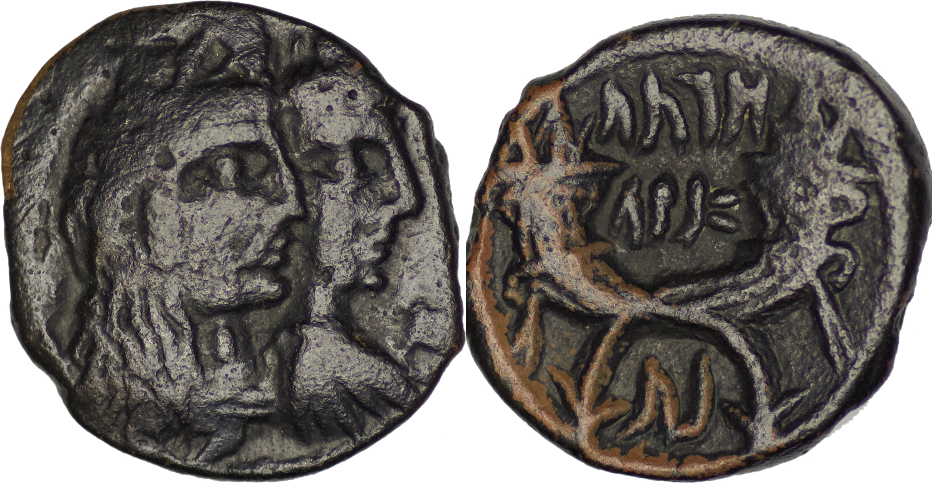 Nabatae Kingdom. Aretas IV, with Shuqailat I (Circa 9/8 BC-AD 40). Æ. Petra mint.