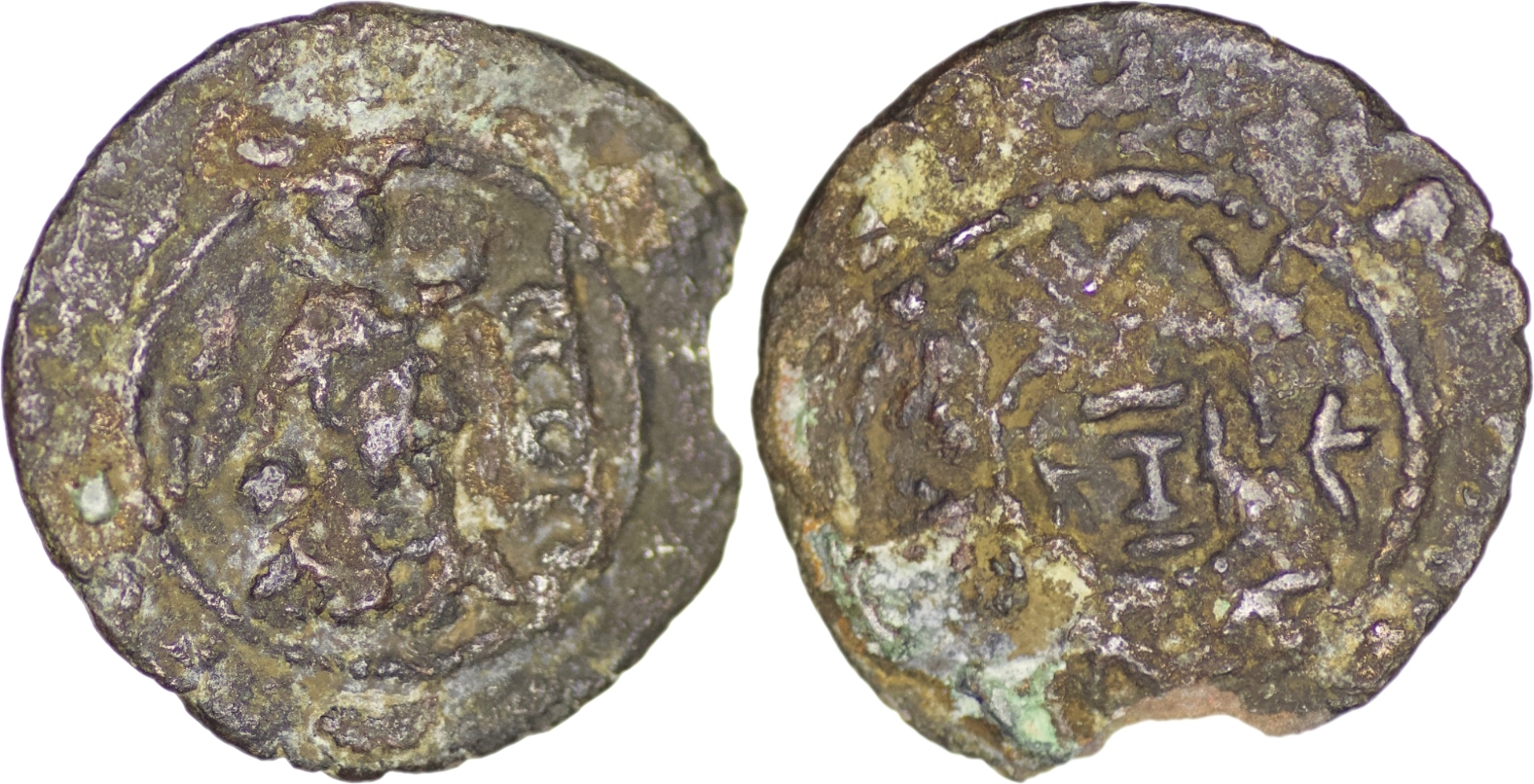 Sasanian Empire. Yazdgard I (399-420 AD). Æ Pashiz (1.85g/ 18mm). ShPWR (Eranshahr Shapur) mint. Bust of Yazdgard I on floral ornament right, wearing mural crown with frontal crescent and korymbos, mint name in Pahlavi in front / Fire altar surrounded by fleur de lys. Rare.