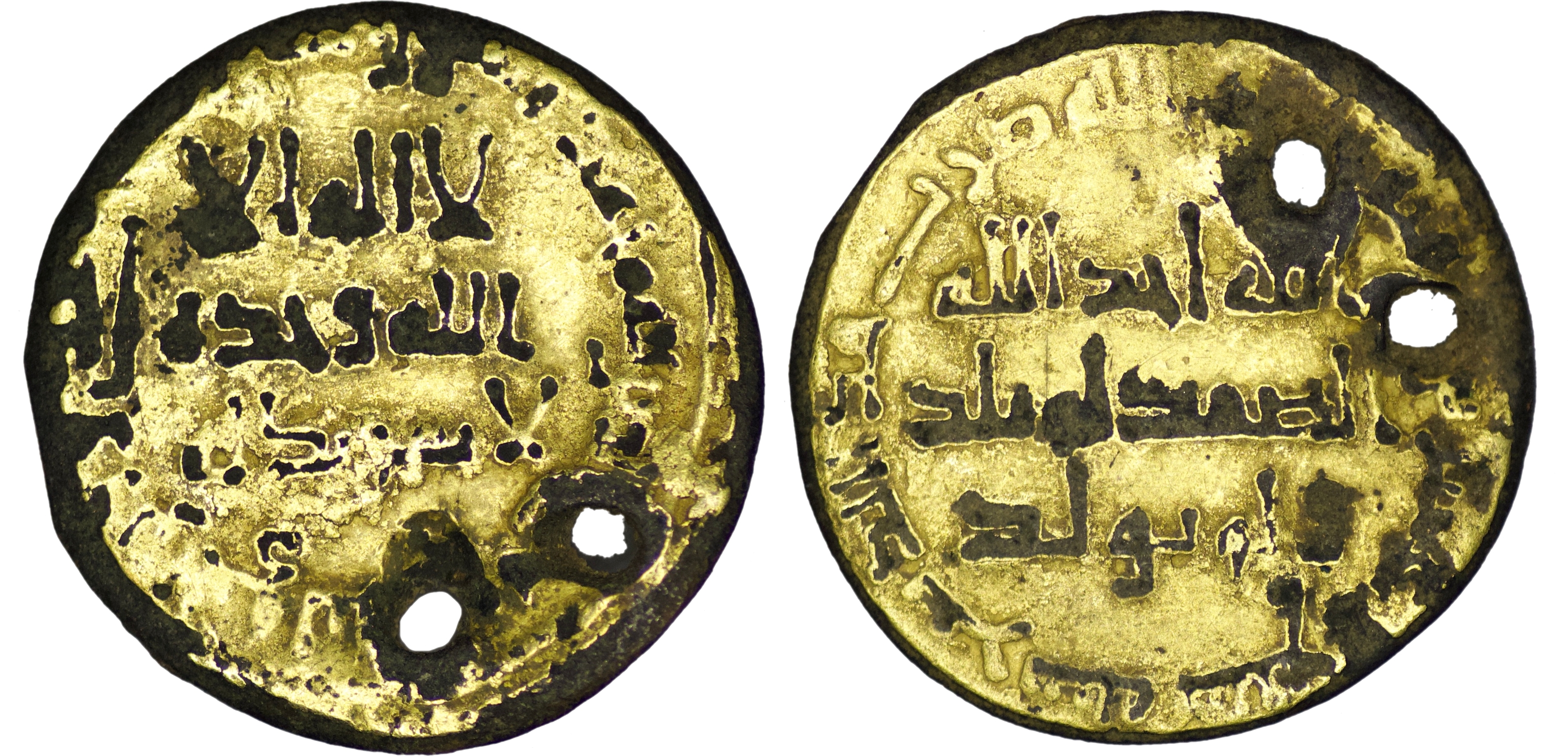 Umayyad. Gold plated Fourree Dinar (2.48g/ 19mm). AH 127. Very rare and interesting academic piece.