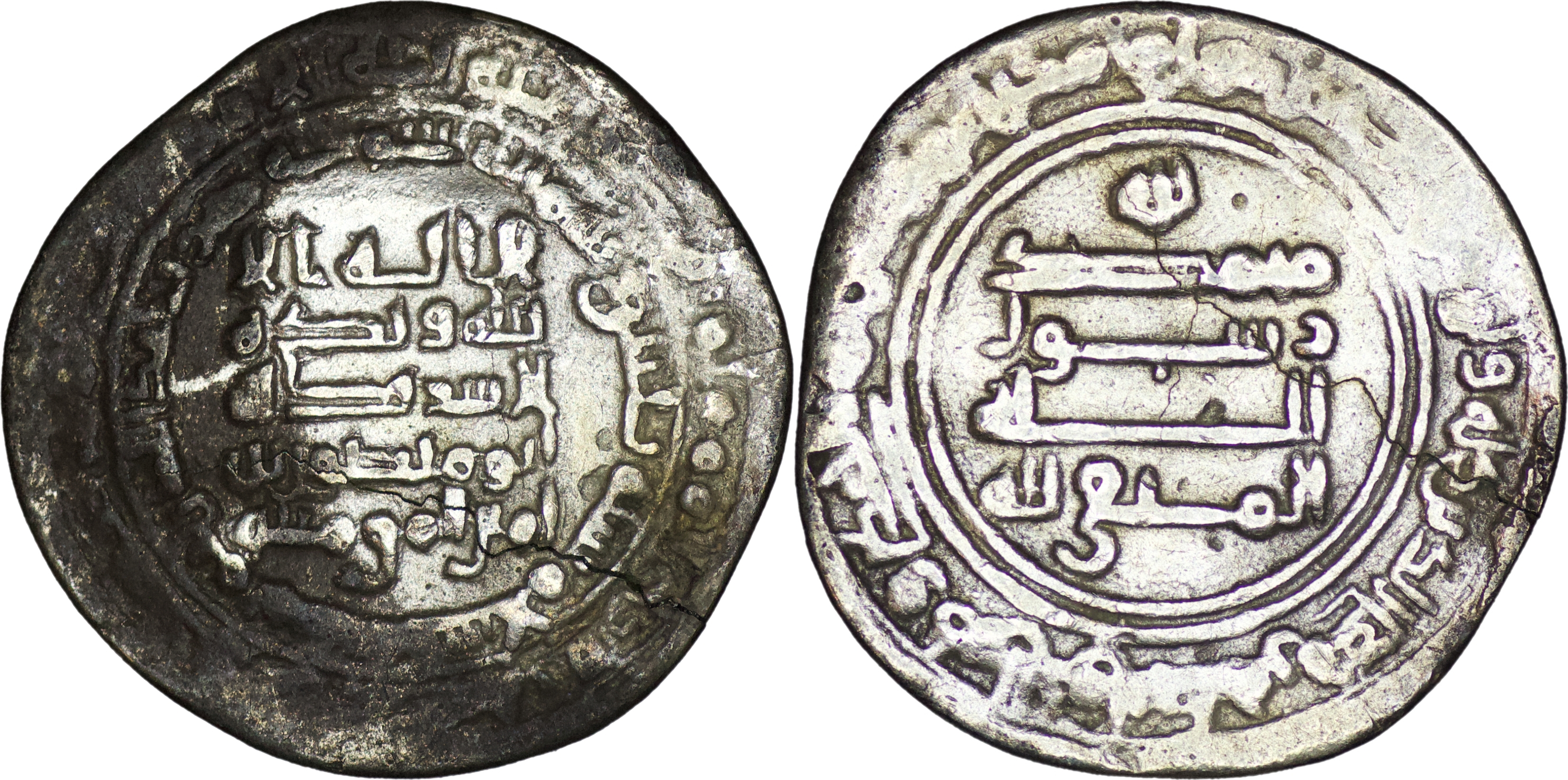 Hamdanid. Nasir al-Dawla (967-969). AR Dirham (2.11g/ 24mm). Madinat al-Salam. AH 330. As sole ruler, citing also the heir to the caliphate, Abu Mansur, earliest year of Hamdanid coinage. Album 749. Very fine.
