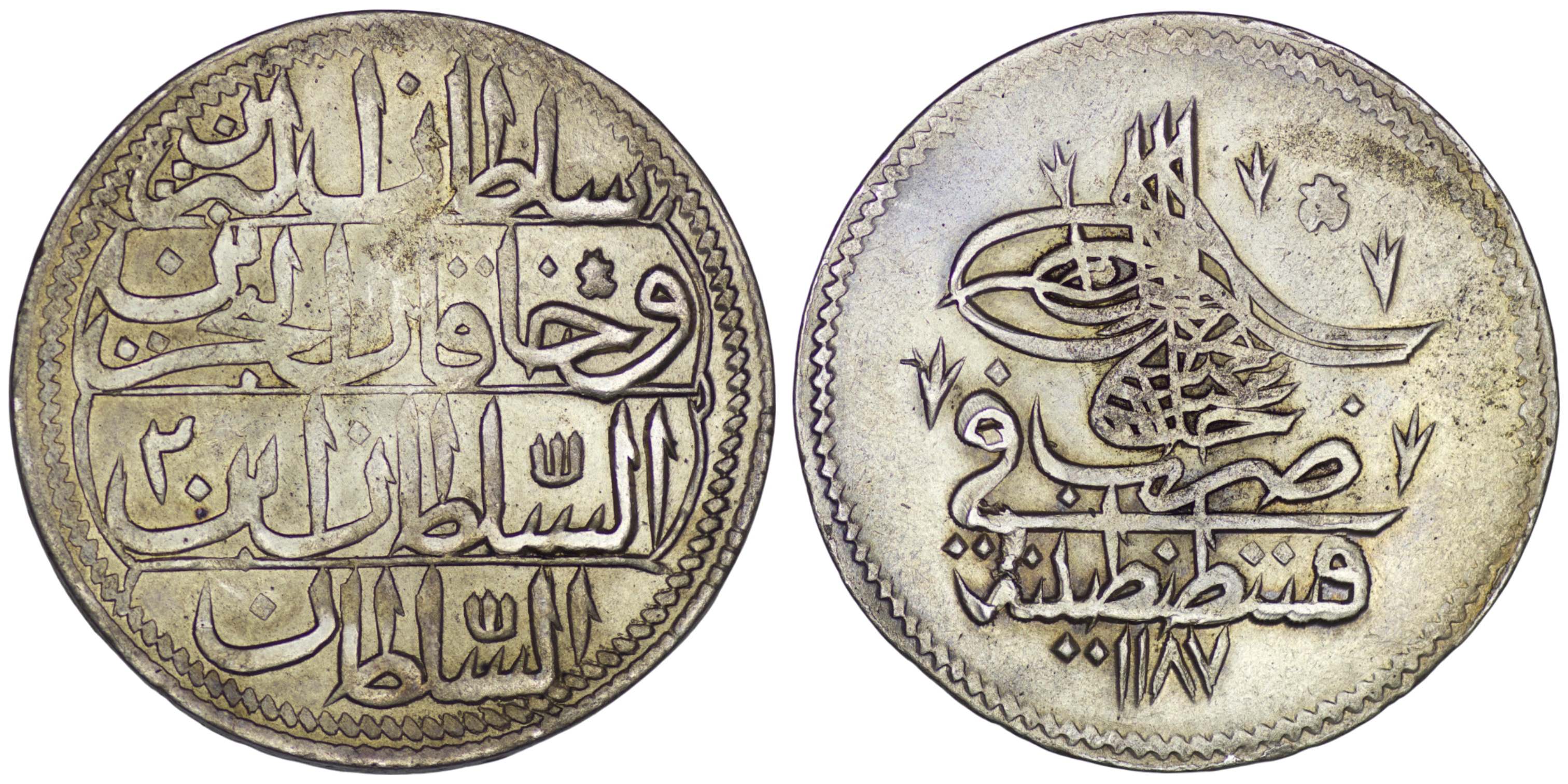 Ottoman Empire. Abdul Hamid I (1774-1789). AR Kurush. (18.72g/ 37mm). AH 1187// Year 2. KM 396. Extremely fine.