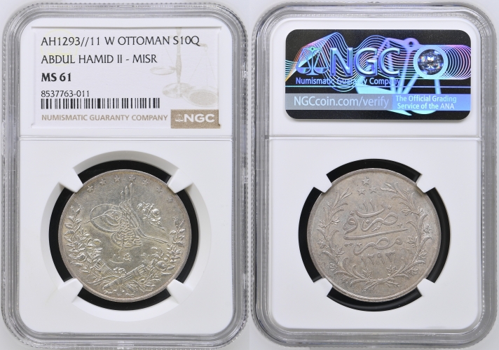 Ottoman Empire. Abdul Hamid II (1876-1909). AR 10 Qirsh. (14g). Egypt. AH 1293 // Year 11. KM 295. NGC MS61.