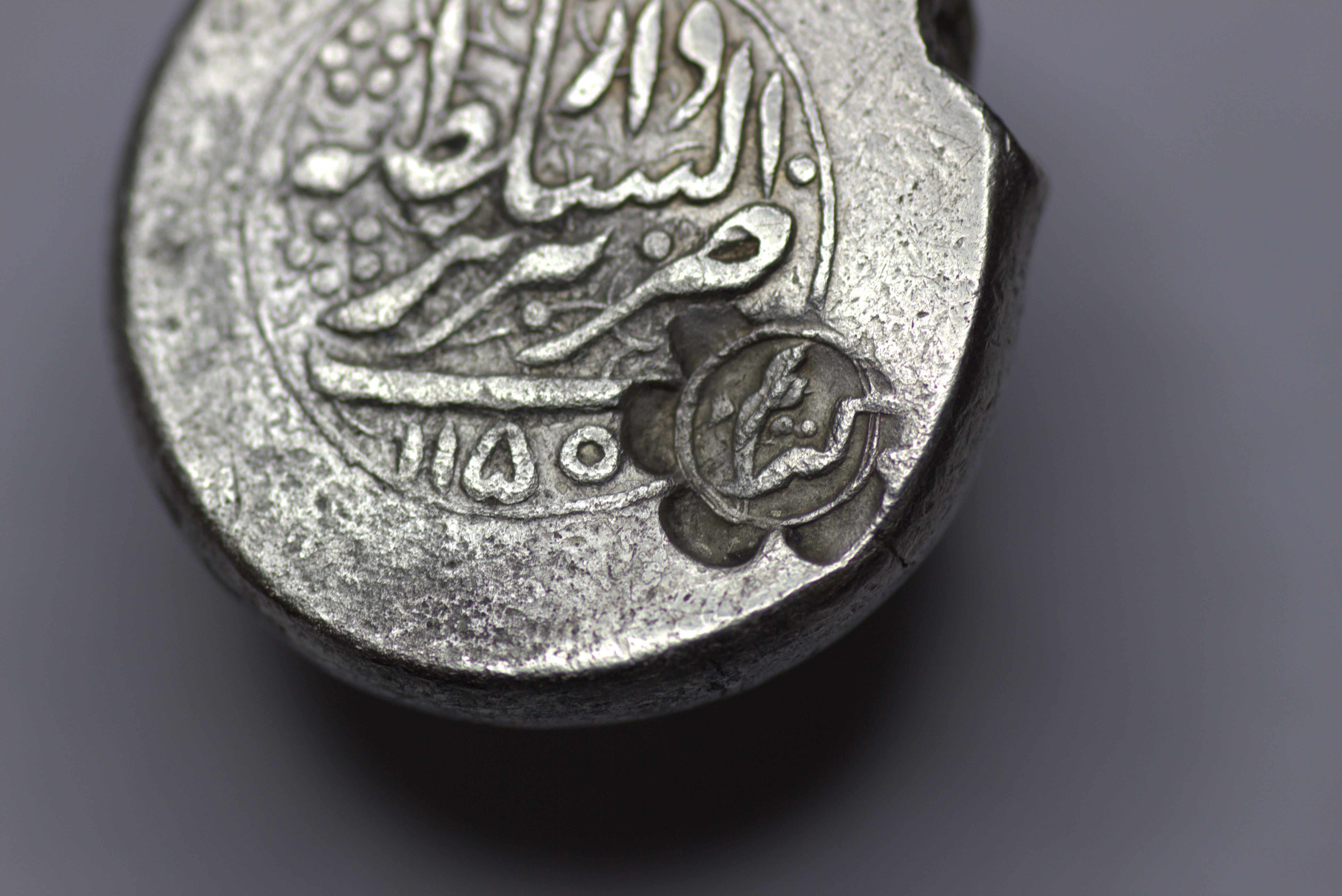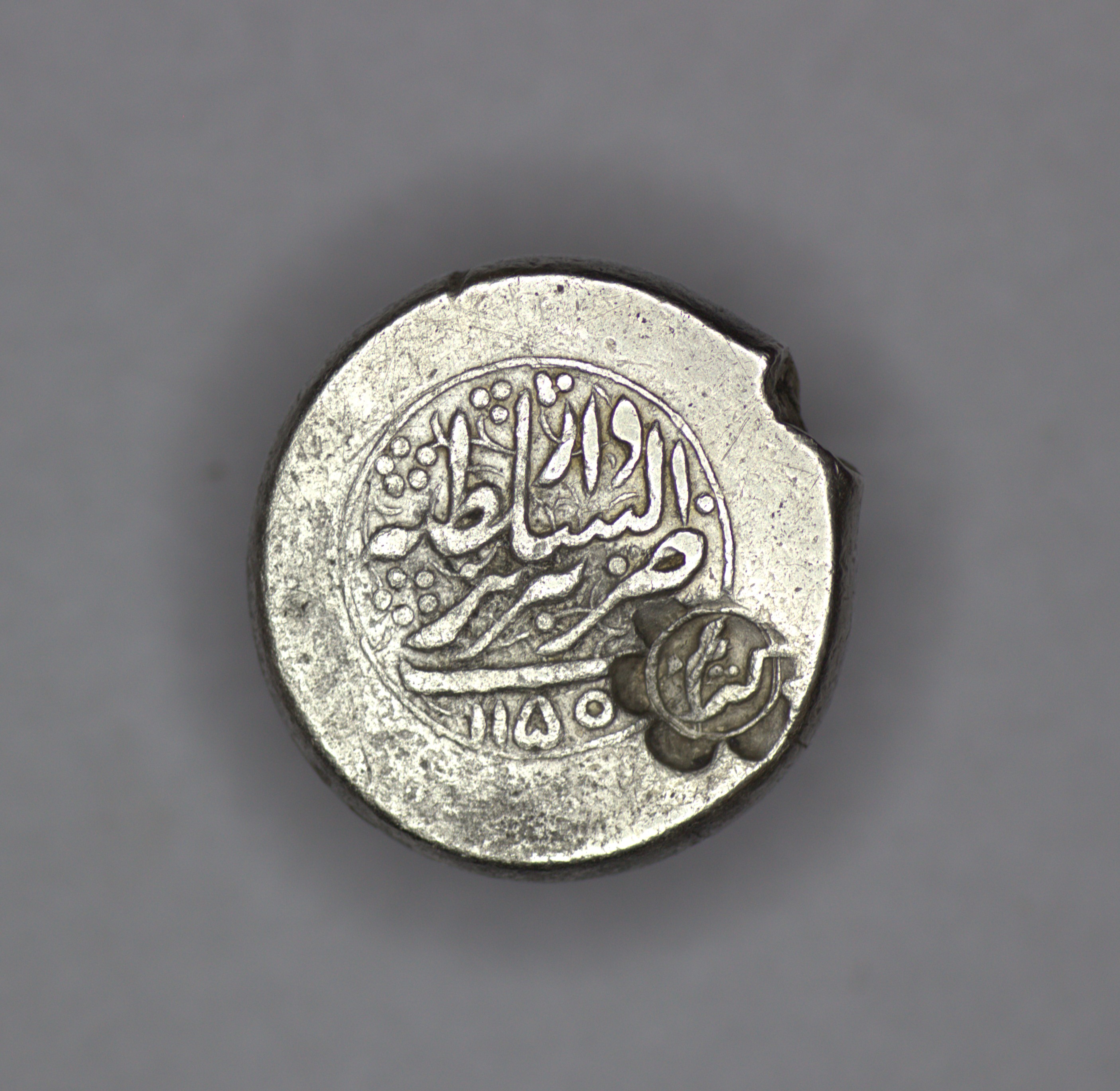 Afsharid. Zand. Nadir Shah (1736-1747)/ Karim Khan (1751-1779). AR Rupee. (11.12g/ 20mm). Tabriz. AH 1150. Album-. Very fine. The coin bears a later countermark on the reverse reading “کریم” (Karim) in Persian. This countermark was most probably applied during the post-Afsharid transitional period, possibly in connection with circulation under Karim Khan Zand (r. 1751–1779), when earlier silver issues continued to circulate and were occasionally revalidated. Alternatively, the mark may represent a regional merchant or sarraf verification punch, a common practice in the Persian and Indian monetary sphere to confirm silver content and authenticity. Extremely rare, possibly unique.