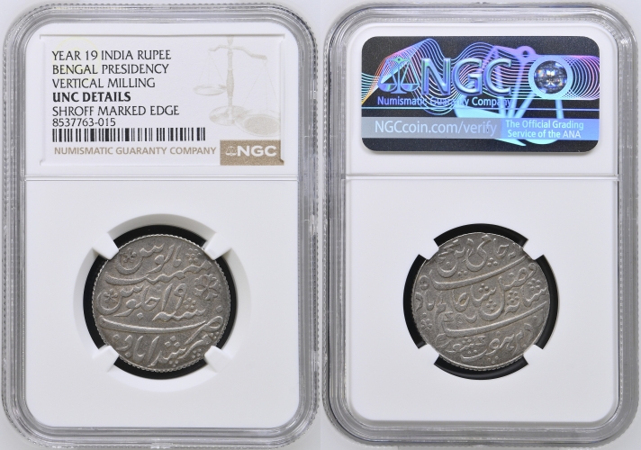Bengal Presidency. Shah Alam II (1760-1806). AR Rupee. Murshidabad . Year 19. KM117. NGC UNC Details.