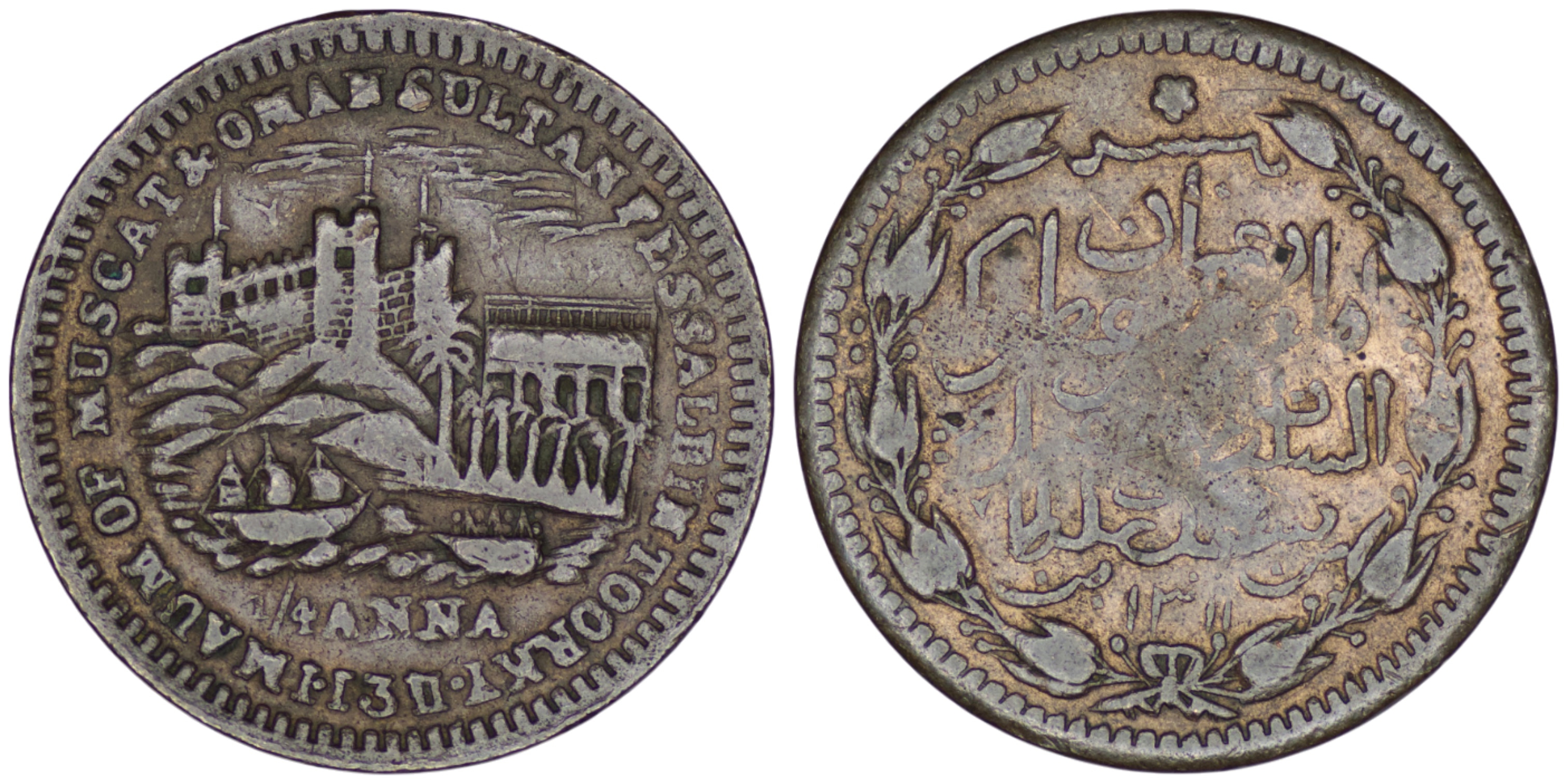 Muscat and Oman. Faisal bin Turki (1888-1913). ¼ Anna. AH 1311 (1894)