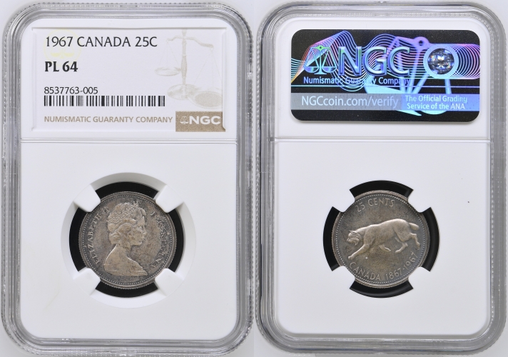 Canada. Silver 25 Cents. 1967. KM 68. NGC PL 64.