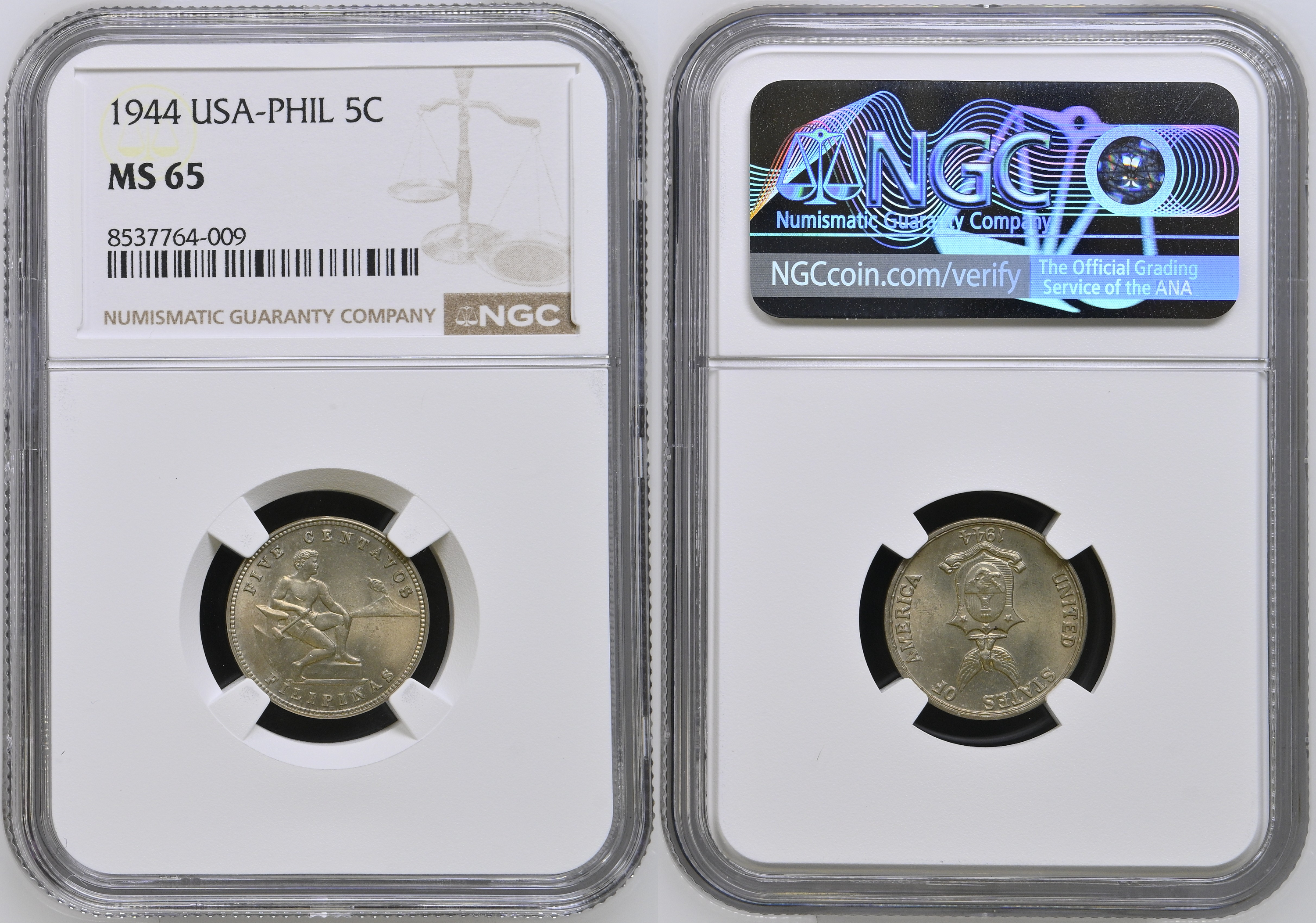 US-Philippines . 5 Cents. 1944. KM 180a. NGC MS65.