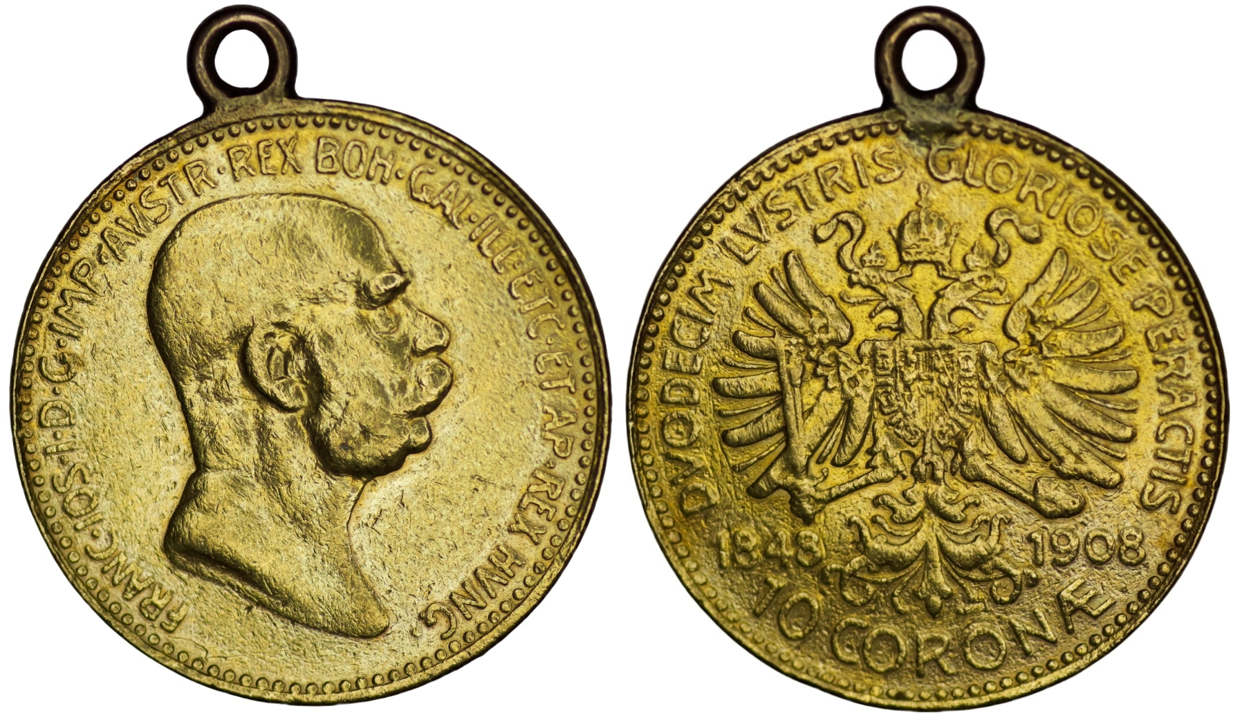 4.5% BP- Austrian Empire. Francis Joseph I. 10 Corone (10 Kronen). 1908. Attached pendant. KM 2810.