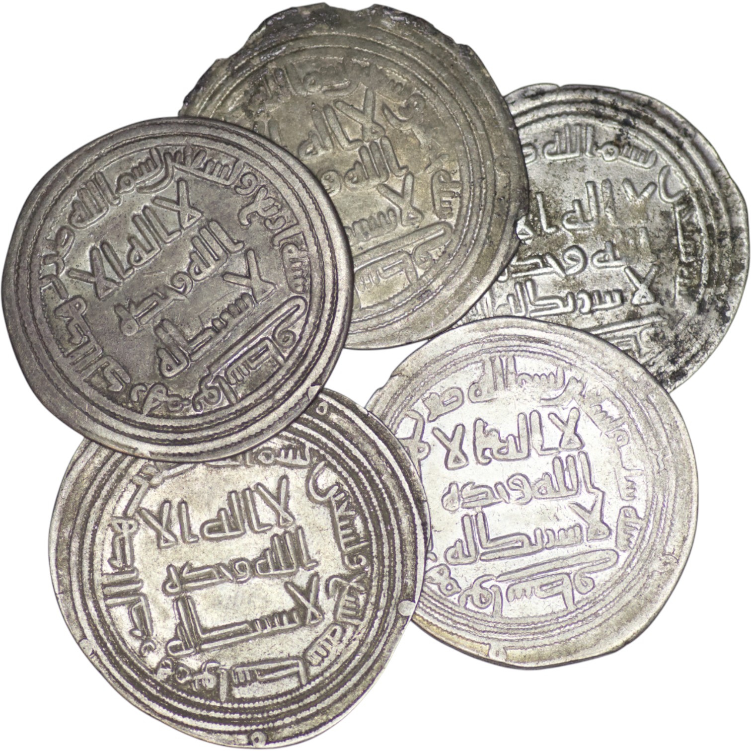 Umayyad. Lot of 5 AR Dirham. All Wasit mint. Year AH 90, 94. 95, 96, 99. Fine to very fine.