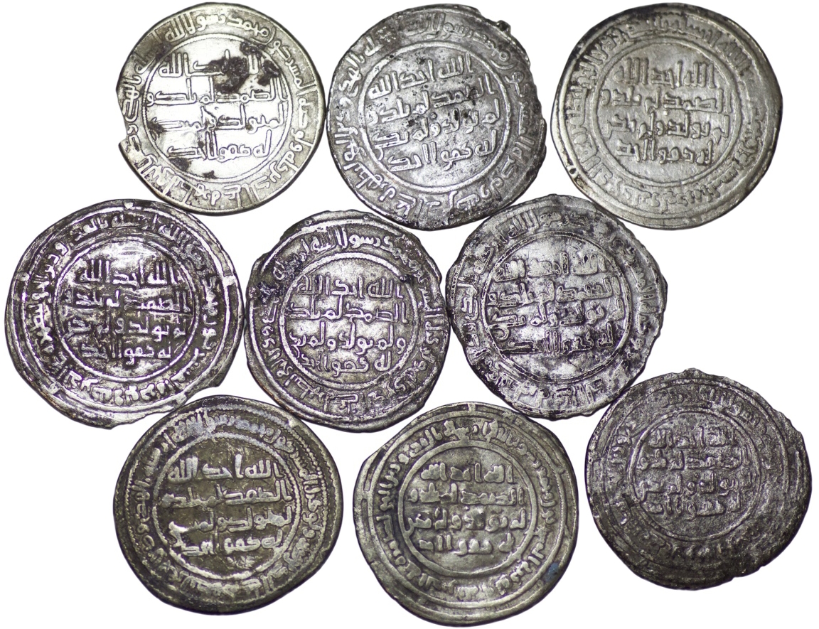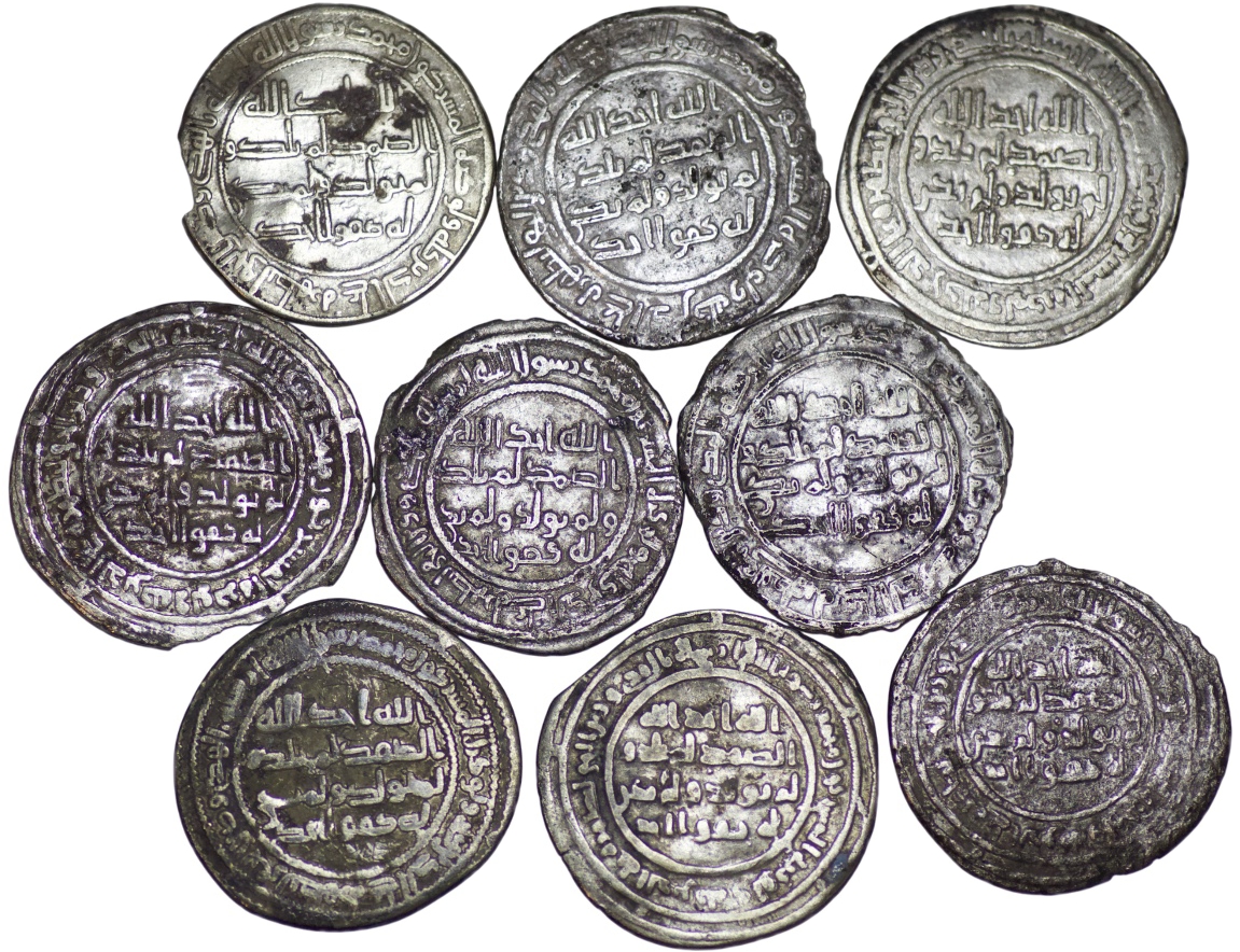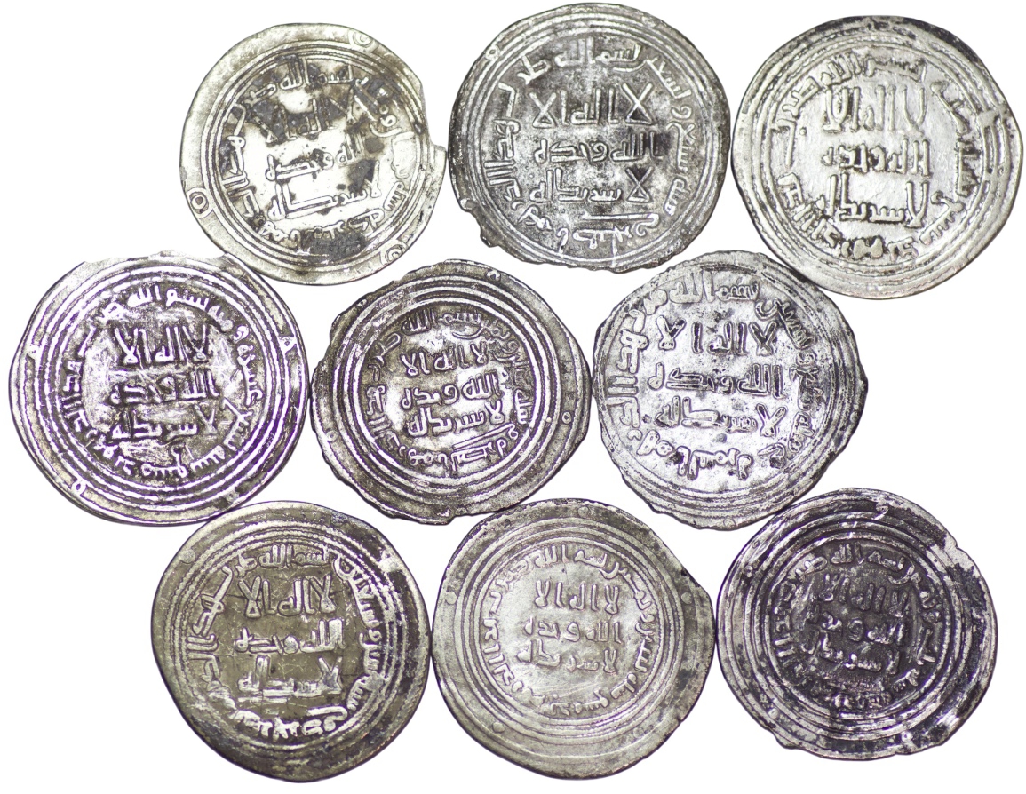 Umayyad. Lot of 9 AR Dirhams. Various mints