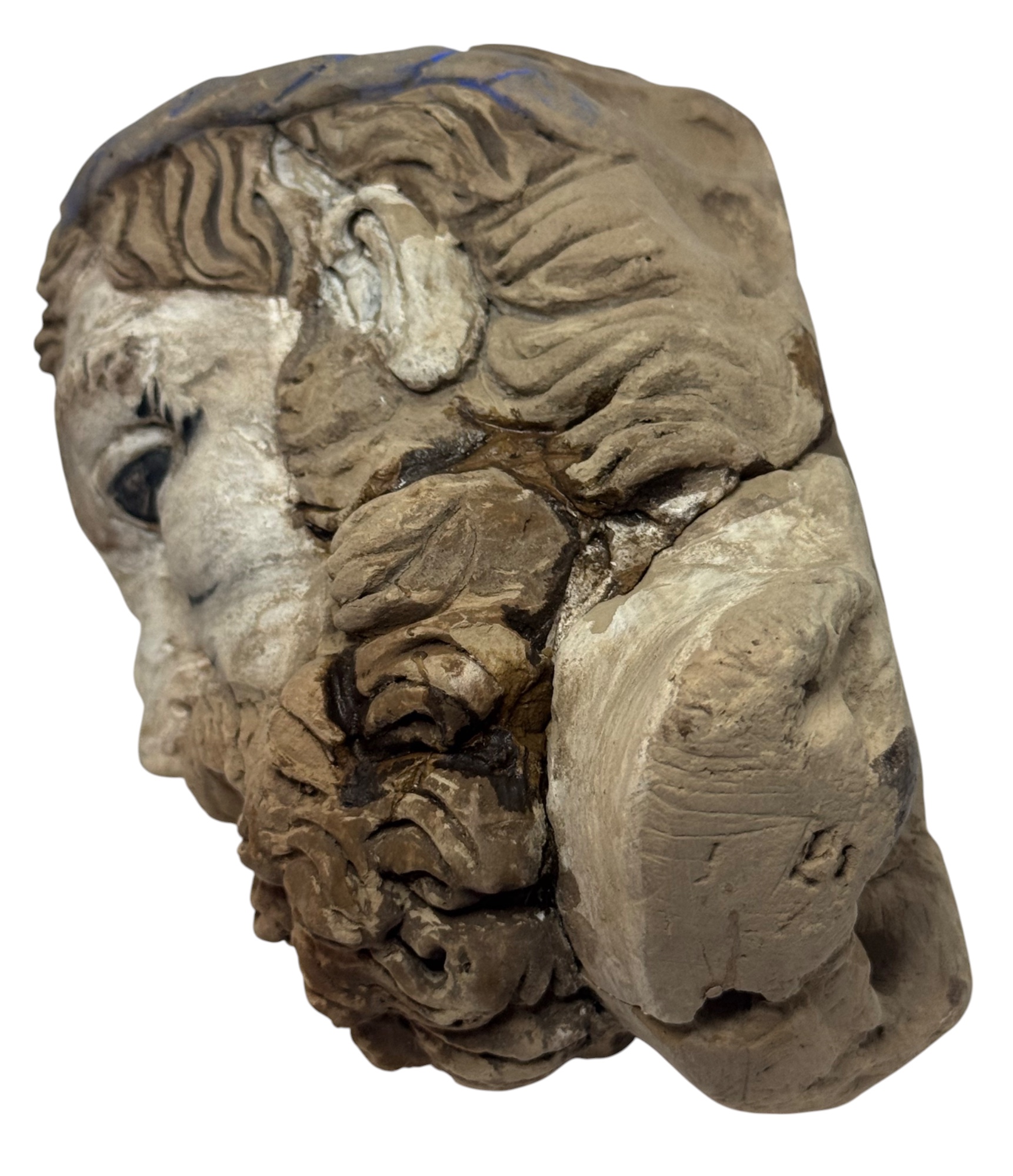 A terracotta bust of a deity, Gandhara. Apex height 12 cm.
