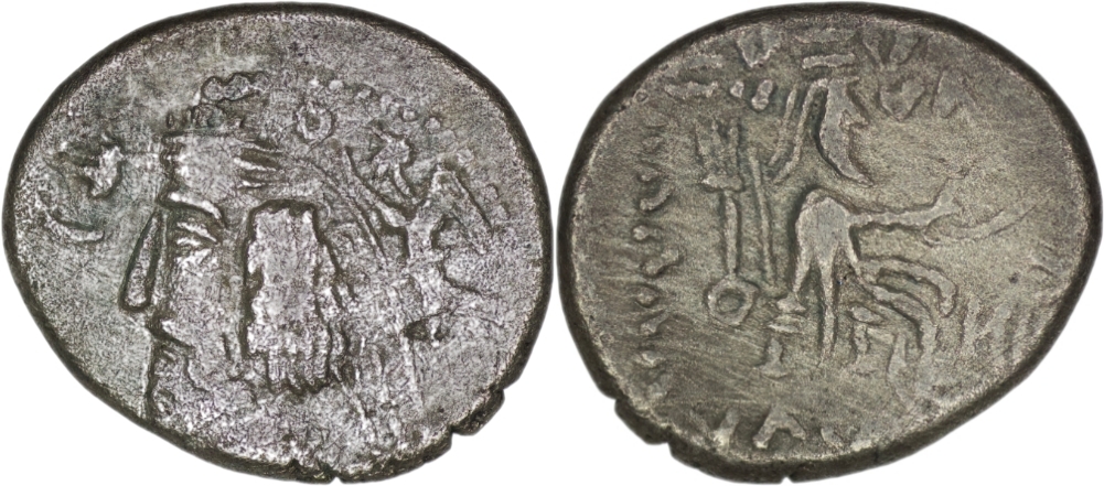 Parthian Empire. Phraates IV (38-2 BC). AR Drachm. (3.49g/ 18mm). Very fine. Possibly and eastern imitation.