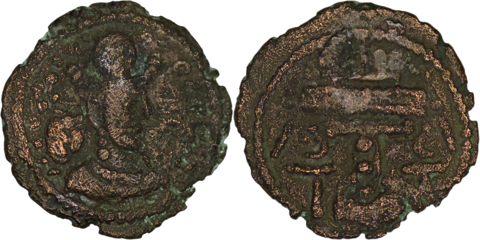 Sasanian Empire. Shapur II (309-379 AD). Æ Pashiz (1.09g/ 16mm). Bust of Shapur II right / Fire altar with two attendants. Very fine.