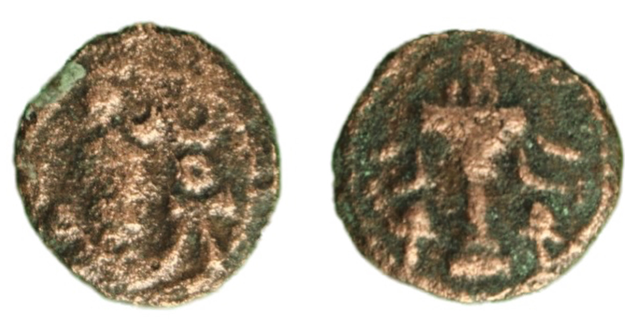 Sasanian kingdom, Yazdgird I, AE Pashiz, fine, Obv king bust right Rev Fire altar (same as Ardashir I samples) very rare, 1.26 g/ 13mm