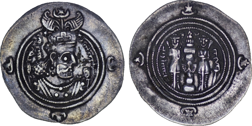 Sasanian Kingdom. Khusrau II AD 590-628 . AR Drachm (4.13g/ 31mm), AHM (Hamadan – Ecbatana) Mint, Date 29, Göbl II/3, Beautiful piece and extremely fine
