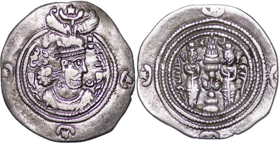 Sasanian empire. Khusrau II. AD 590-628. AR drachm (3.82g/30mm), DA (Darabgird), Year 16, Göbl II/3, Choice Very fine