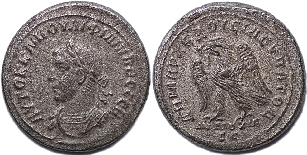 ΑΥΤΟΚ Κ Μ ΙΟΥΛΙ ΦΙΛΙΠΠΟC CЄΒ Laureate and cuirassed bust of Philip II to left; under right shoulder./ ΔΗΜΑΡΧ ЄΞΟΥCΙΑC ΥΠΑ ΤΟ Δ / ΑΝΤΙΟΧΙΑ / S C Eagle with spread wings standing left, holding wreath in beak.