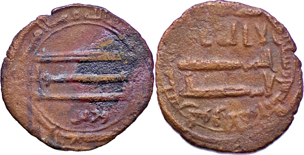 ABBASID: AE fals (1.63g/ 18mm), Suq al-Ahwaz, AH178, A-336, citing the governor al-‘Abbas b. al-Fadl in the reverse margin, VF, RR.