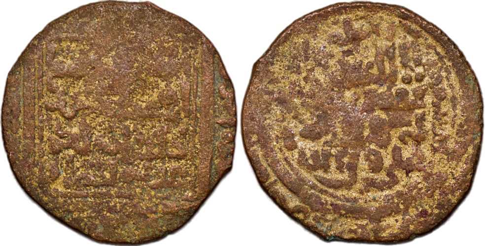 ILKHAN: Uljaytu, 1304-1316, AE ‘adliya (3.74/ 25mm), Shiraz, AH71x, A-2190N, bottom line on obverse is ‘adliya shiraz, Shi’ite reverse as on type B in gold & silver, F, R.
