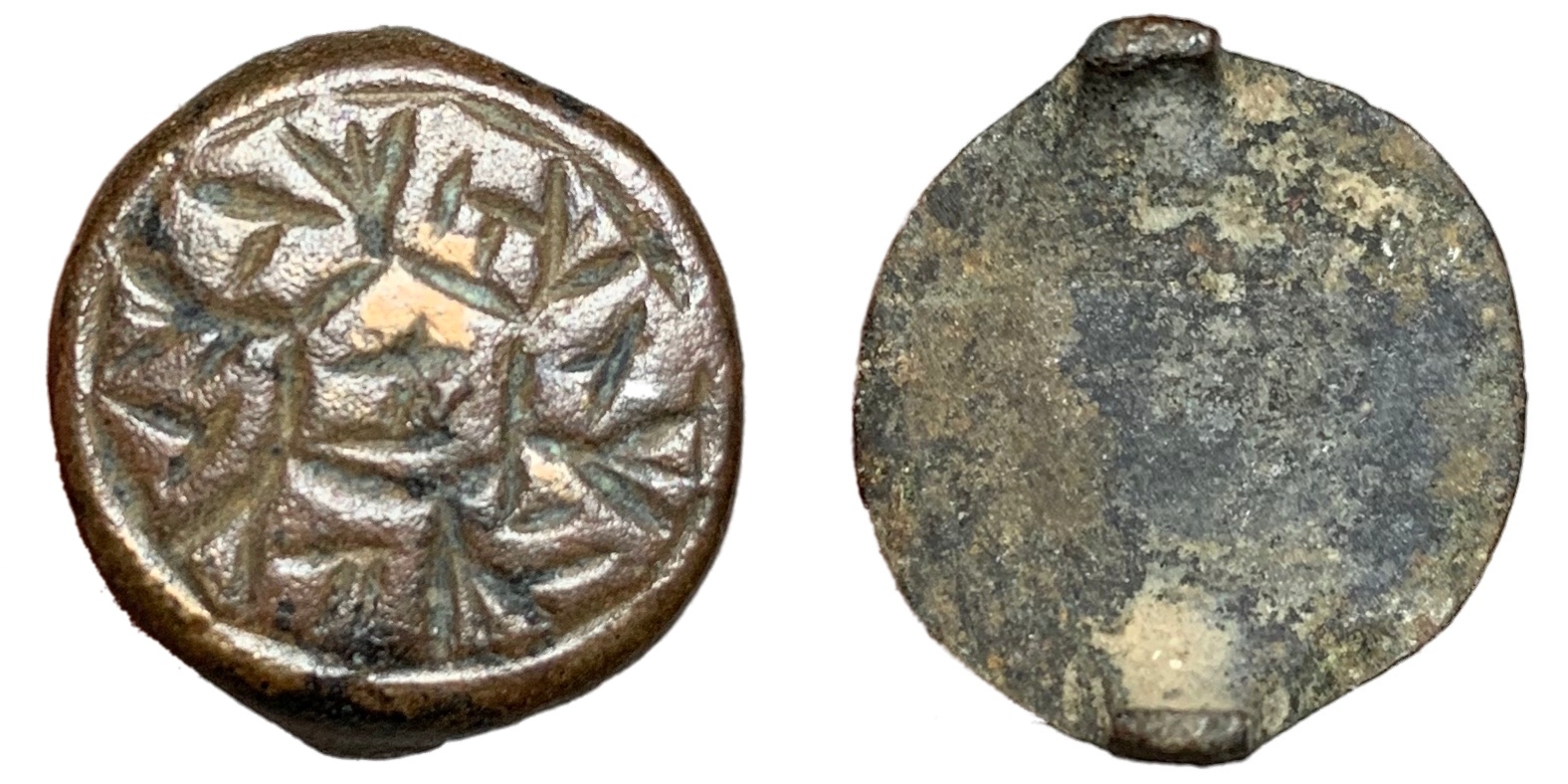 Bronze ring head probably pre-mongol, lovely pattern on obverse and very fine choice (3.54g, 17mm)