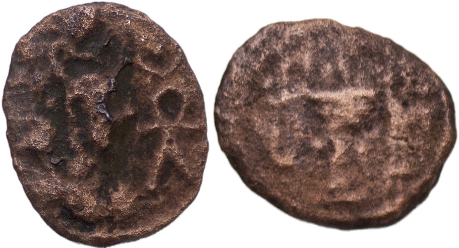 SASANIAN EMPIRE, Vahram V (Varahran), AD 420-438, AE Pashiz (0.77 gm; 12mm). Vahram’s bust right, Symbole to right /fire-altar & two attendants. Well struck on a nice flan. Choice VF.