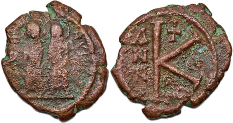 BYZANTINE EMPIRE. Justin II, 565-578 AD. Æ Half Follis