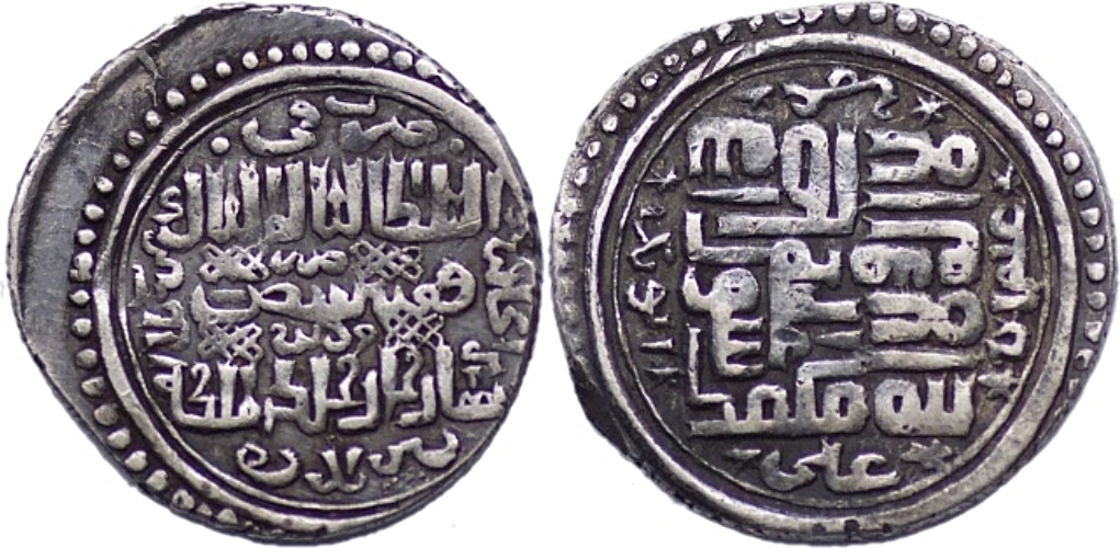 Ilkhans, Abu Sa’id, AH 716-736 (AD 1316-1335). AR 2 dirhams (2.71g/ 19mm), Mardin mint. Dated 33? khani (AH 734/5), A-2217, Diler ab-487. Very fine. RARE MINT.