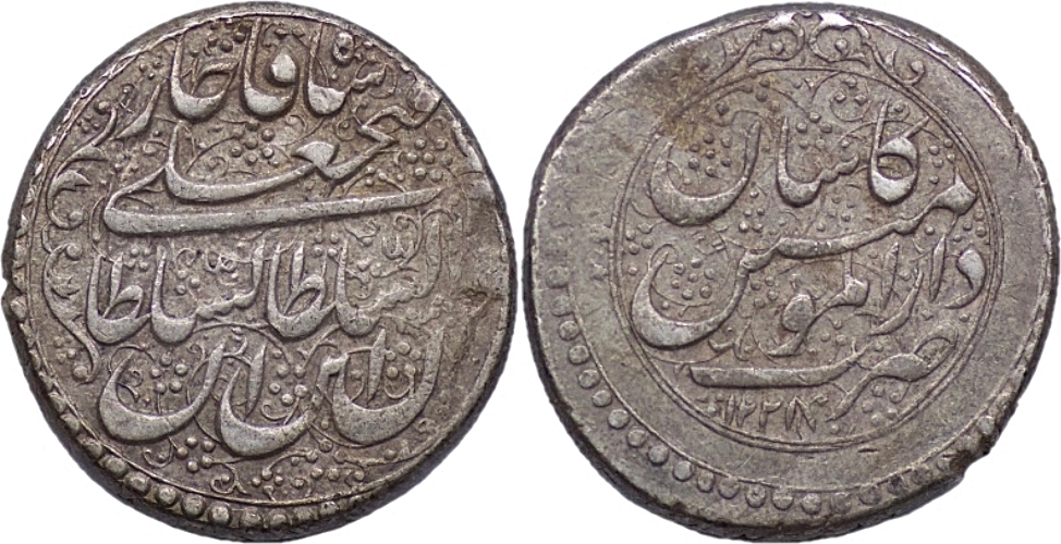 Qajar, Fath 'Ali Shah, AH 1212-1250 (AD 1797-1834). AR Rial. Dar al-mu'minin Kashan mint. Dated AH 1228