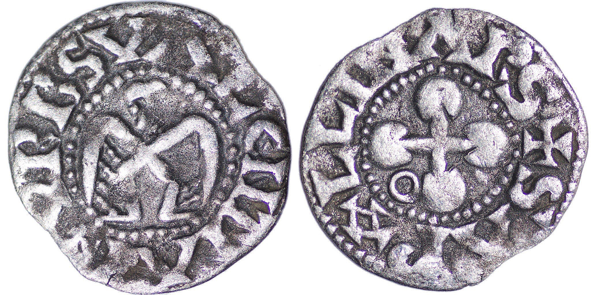 France, Provincial. Valence et Die, Uncertain Bishop, 13th century AD. AR Denier (0.89g / 18mm). Angel standing facing with wings displayed/ Cross; annulet in fourth quarter. Metcalf. Crusades 39-40. Very fine.