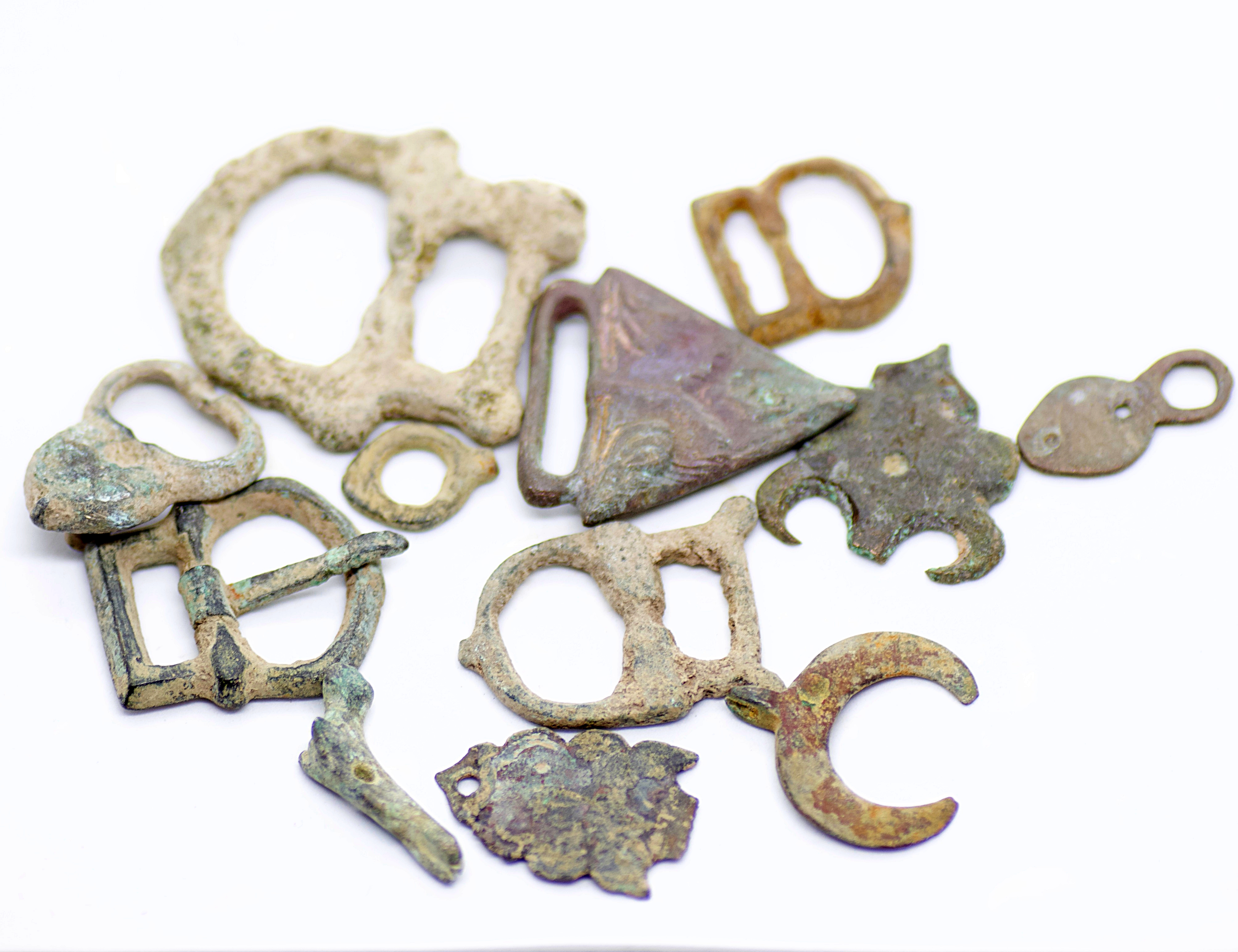 Lot of Ancient Roman Bronze Belt buckles and belt pieces.