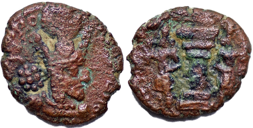Sasanian empire. Shapur I. A.D. 240-272. AE Pashiz (1.71g/ 13mm). Crowned bust right / Fire altar with two attendants. Very Fine piece, Beautiful struck.