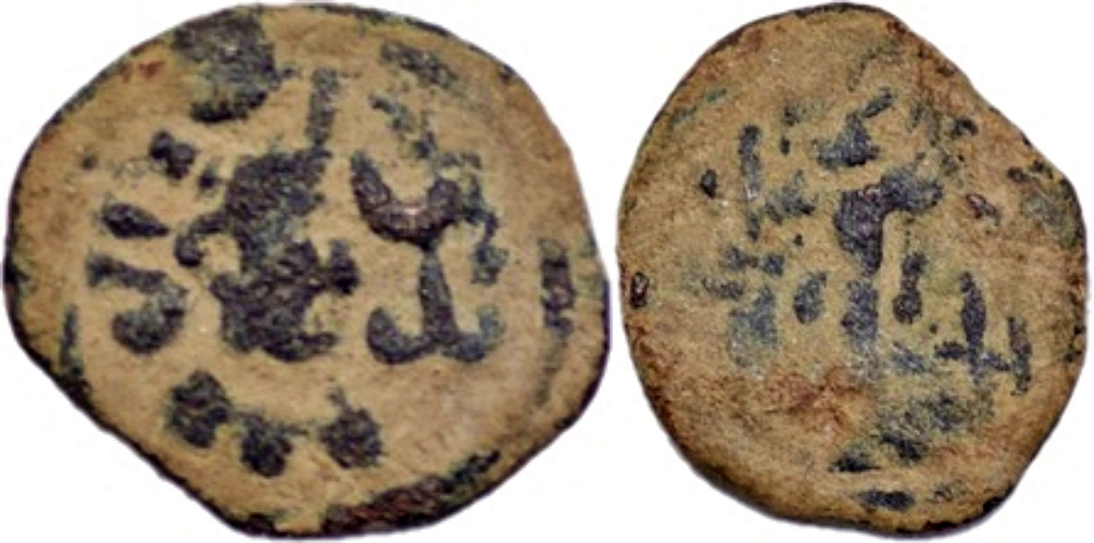 SASANIAN KINGS, Vahram V (Varahran), AD 420-438, Æ Pashiz (0.94g/ 11mm ). Vahram’s bust right, undefined Sasanian symbol to right / fire altar with bust right in flames & two attendants. Gobl I/1; Gyselen 158-var. Very fine, original brown patina . Rare.