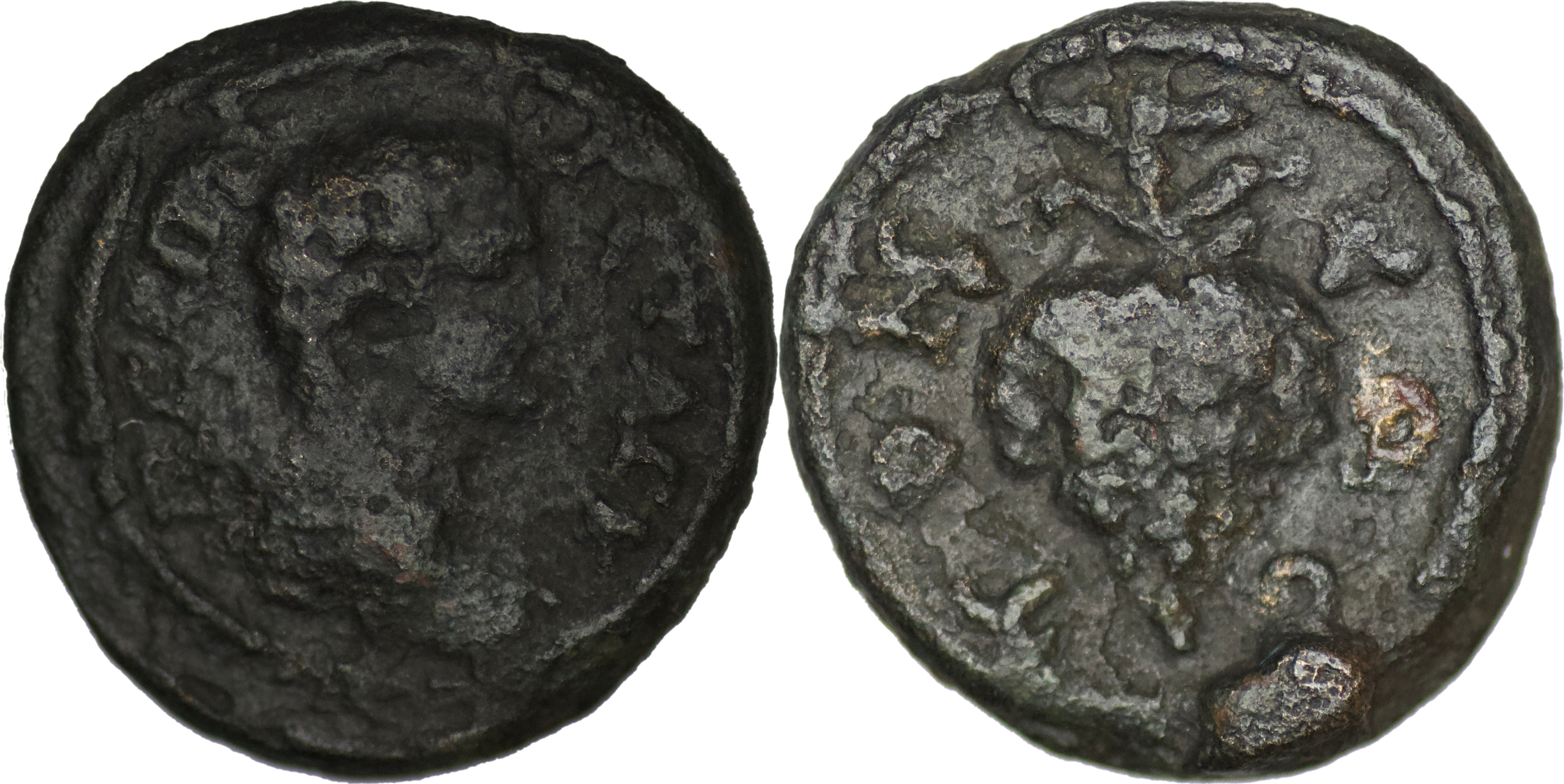 MOESIA INFERIOR, Tomis. Pseudo-autonomous issue. temp. Elagabalus – Severus Alexander, AD 218-235. Æ (3.84g/ 17mm). Diademed head of Tomus right / Grape bunch on vine. AMNG I 2569. Good VF, red-brown patina.