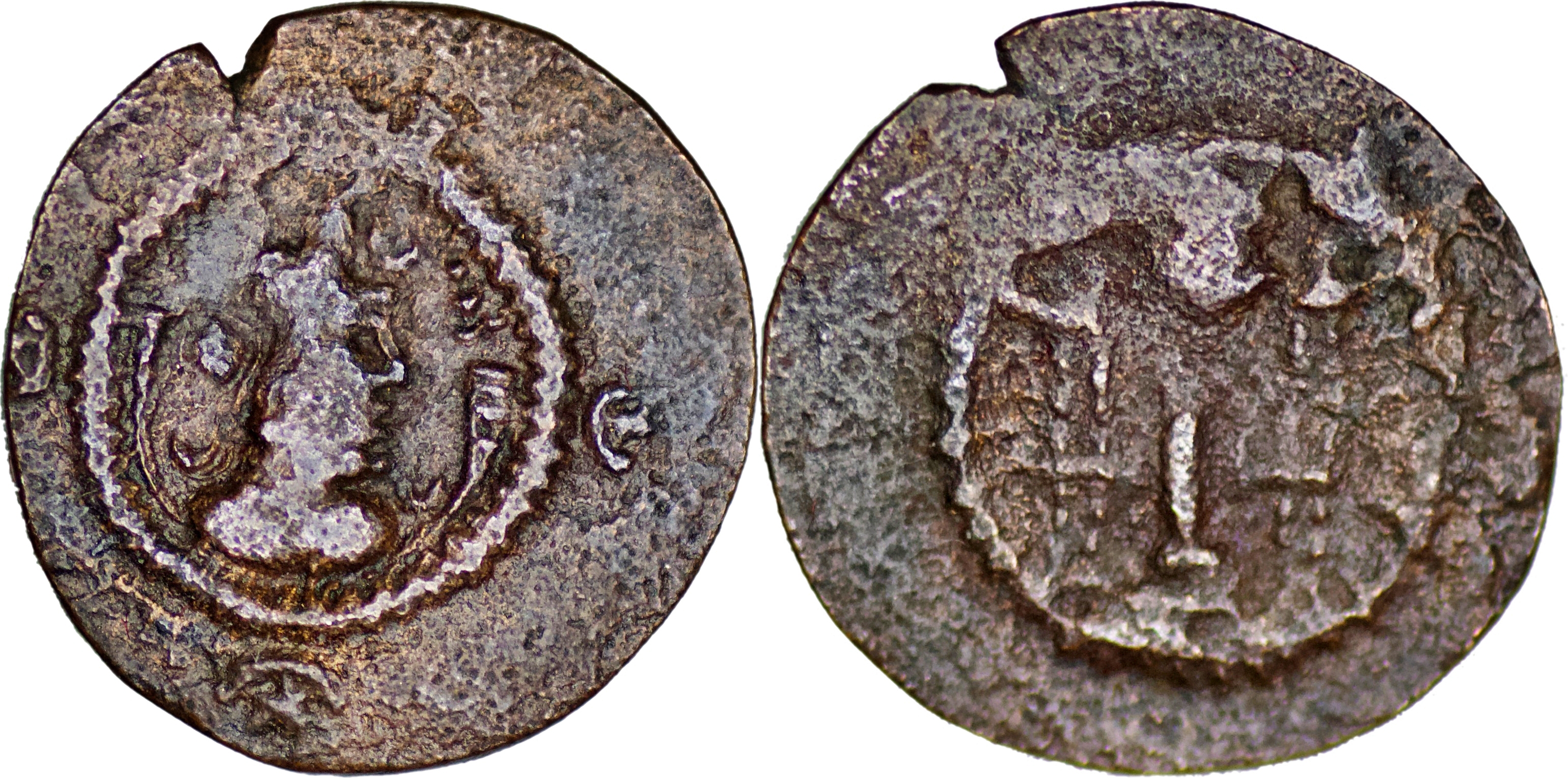 Sasanian Empire. Kavadh I, second reign, 499-531. AE Pashiz (0.40g/ 11mm), uncertain mint and date. Draped bust of Kavadh I to right, wearing mural crown with frontal crescent and korymbos set on crescent. Rev. Fire altar flanked by two attendants; in upper field to left, five-pointed star; in upper field to right, crescent. CNG E-Auction 415 (2018), 284. SNS III, type Ib/1a.