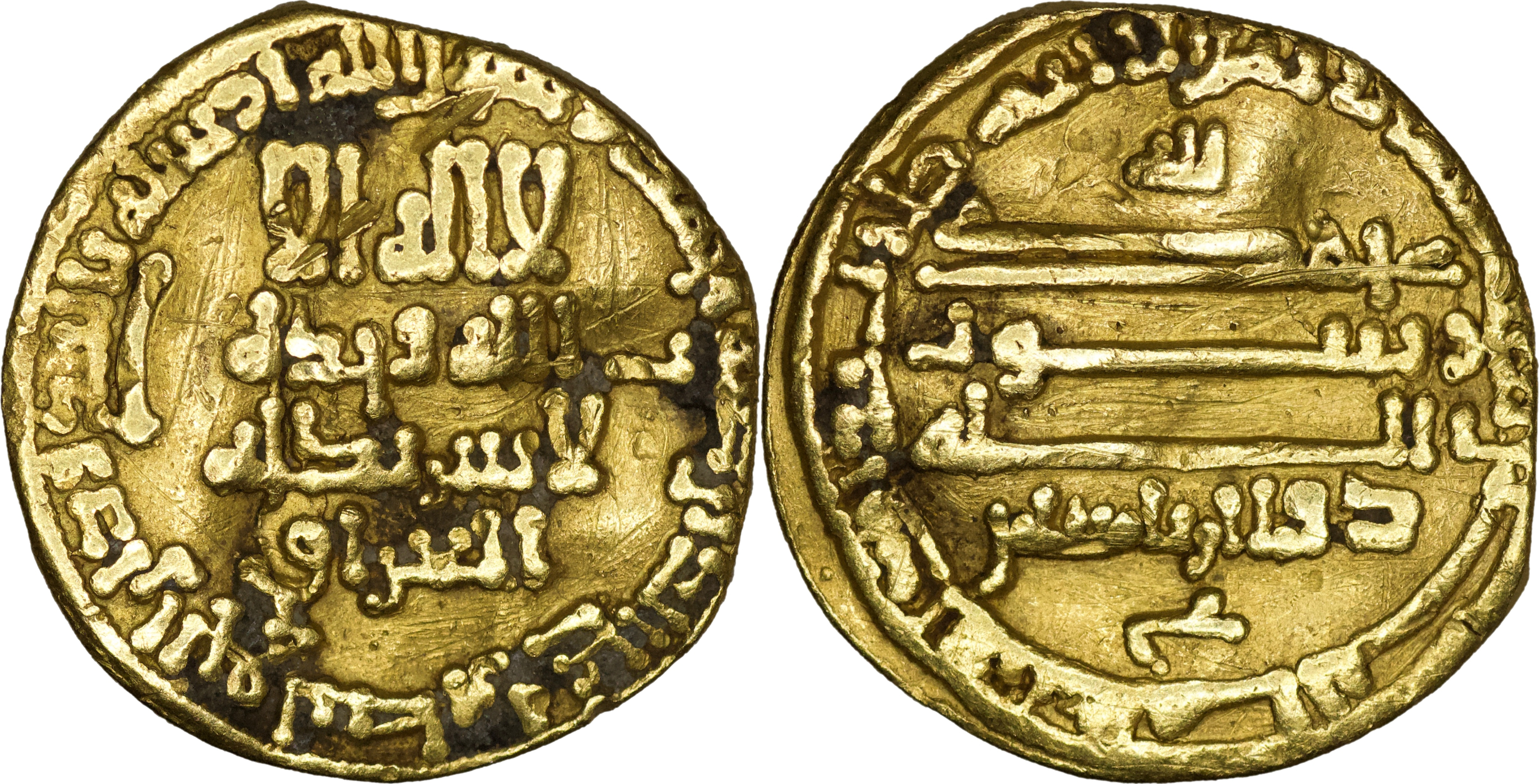 Abbasid: al-Ma’mun AH 194-218/ 810-833 AD). AV Dinar, AH 200. Madinat al-Salaam mint. (3.74 g) Citing Dhu’l-Ri’asatayn, letter below; al-`Iraq below obverse. A-222.12. Scarce. Some old test scratches in fields, very light deposits. Very Fine. ex Paisley Collection.