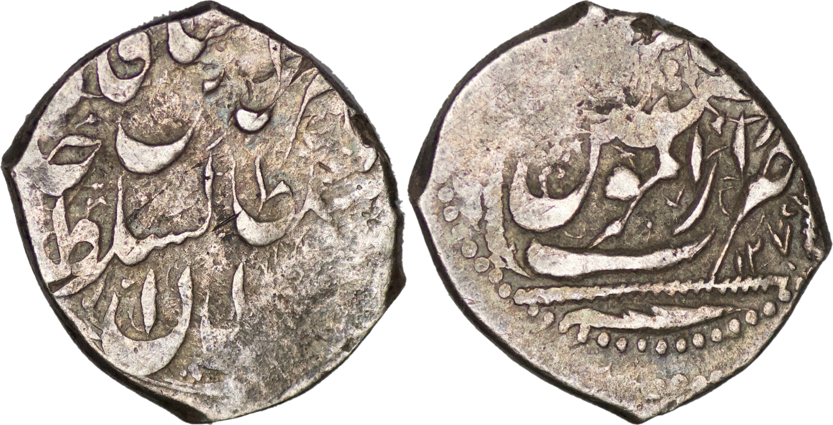 Qajar. Nasir al-Din (1848-96), AR 1/2 Toman (2.47g/ 14mm) Kashan. AH 1275. Fine