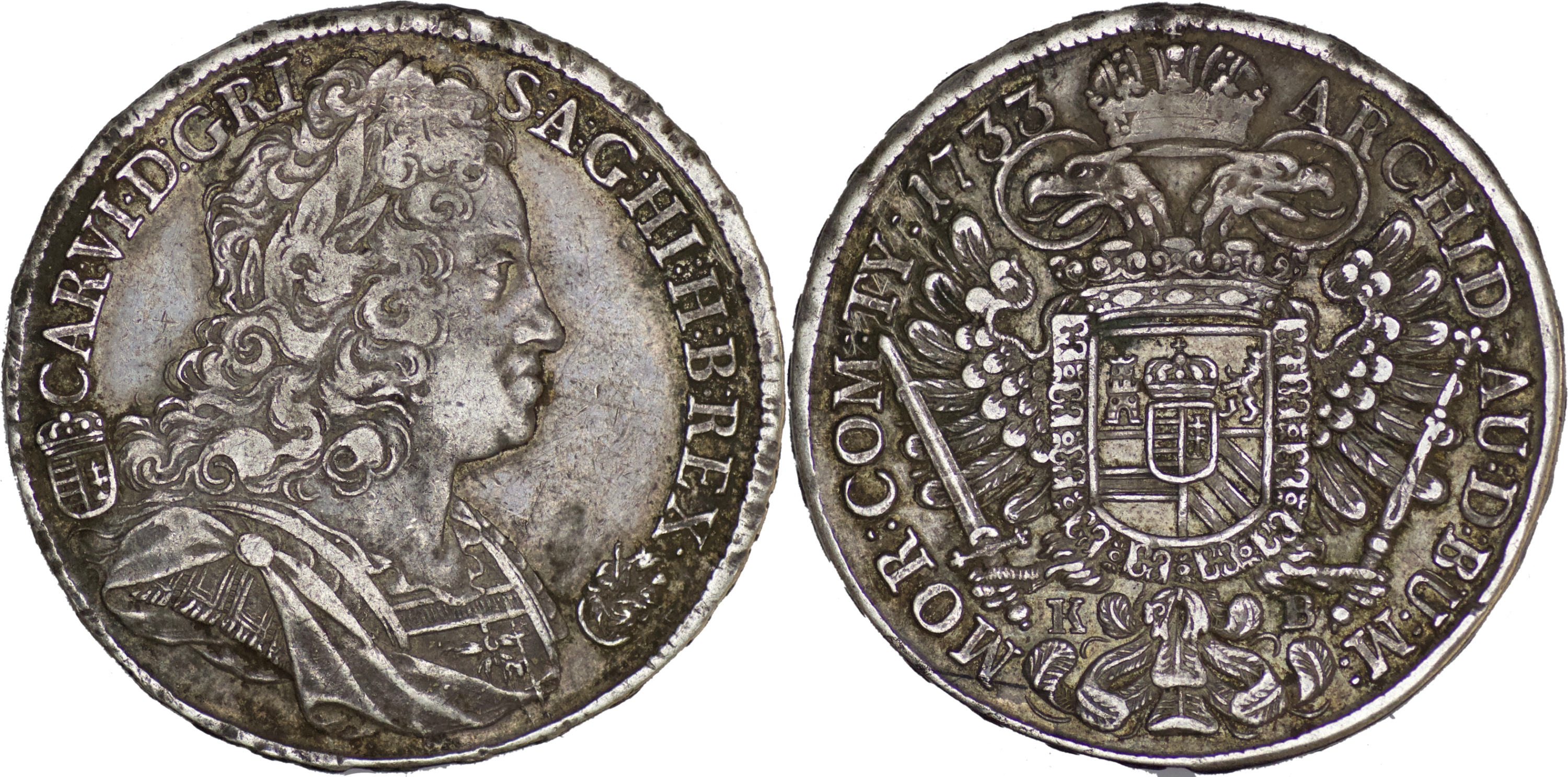 Charles VI, House of Habsburg. Thaler (28.78g/ 39mm) 1733. Kremnitz. Huszár 1605, CNA 211-g-6, Herinek 448. Very fine