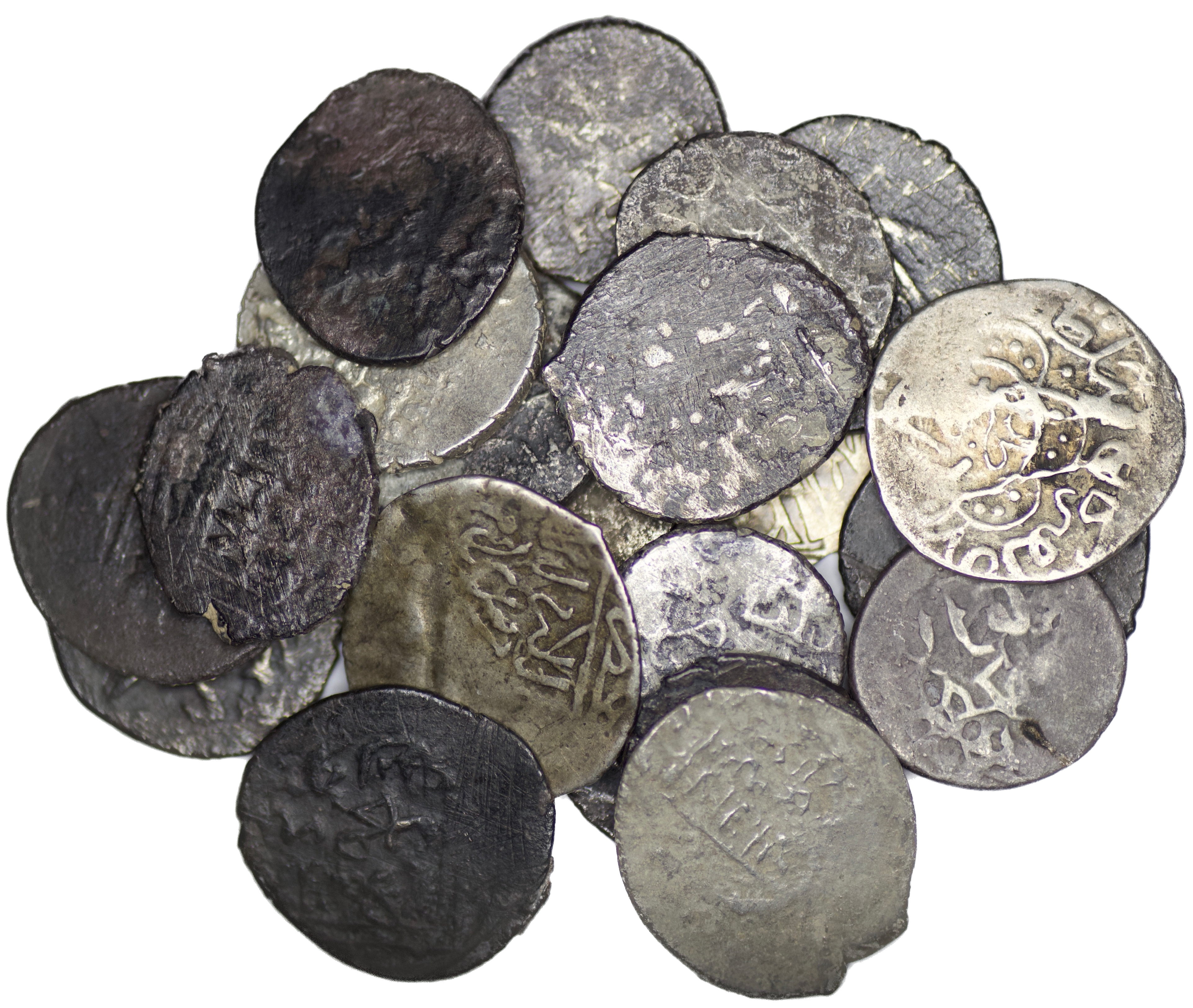 Lot of 22 silver Islamic coins, mainly Timurid, Shahrukh, Huwayza mint. Rare types