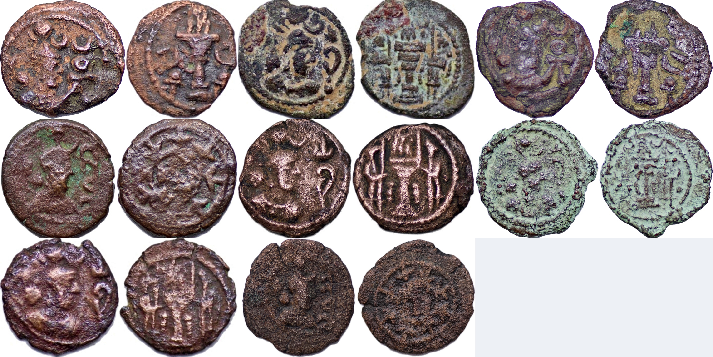 Group Lot of 8 Sasanian AE Pashiz, various rulers, including rare samples. Fine to very fine.