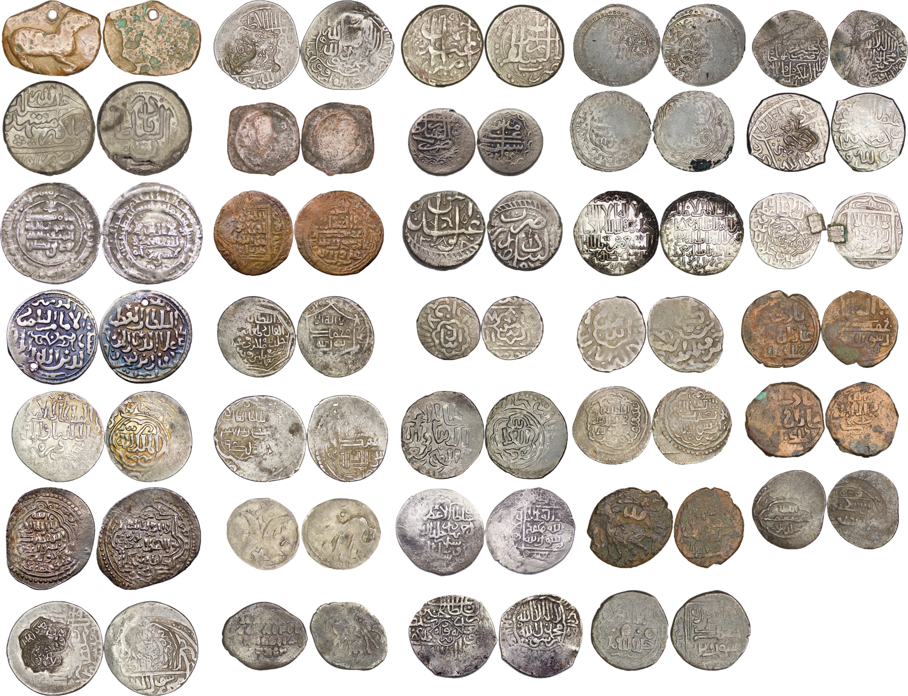 Group Lot of 34 Islamic AR and AE Coins, various rulers, including rare samples. Fine to very fine.