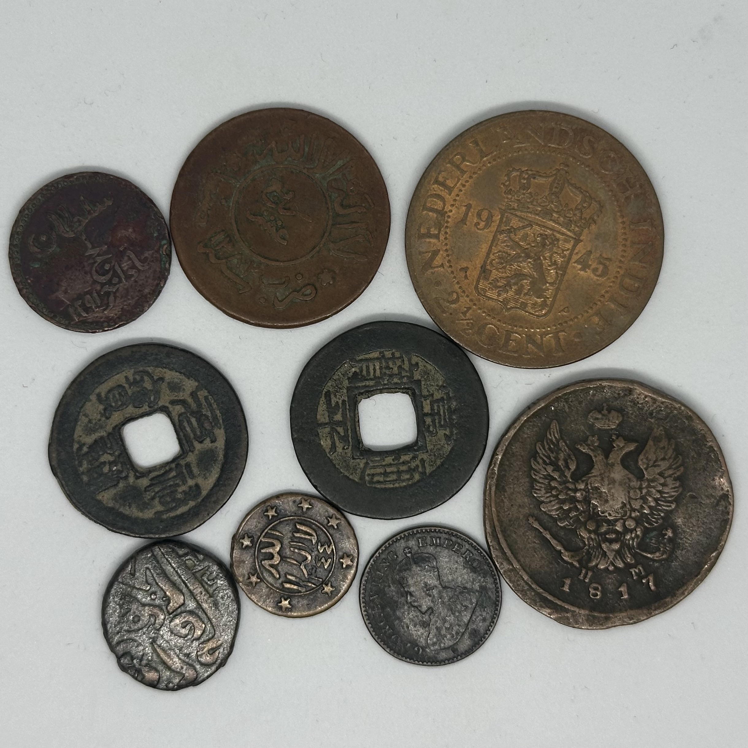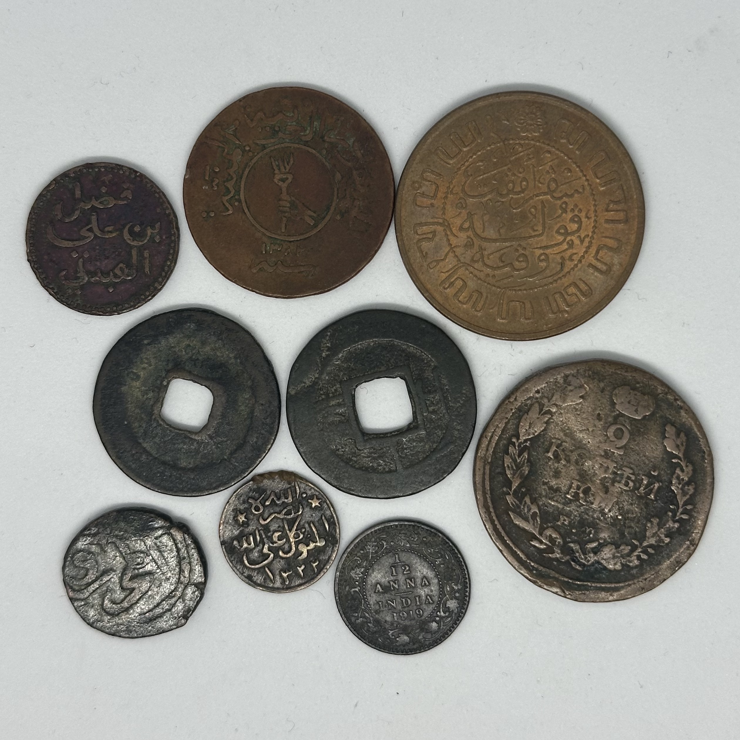 Group Lot of 9 AR World Coins. Different properties, including Yemen, Great Britain and Russia. Fine to very fine.
