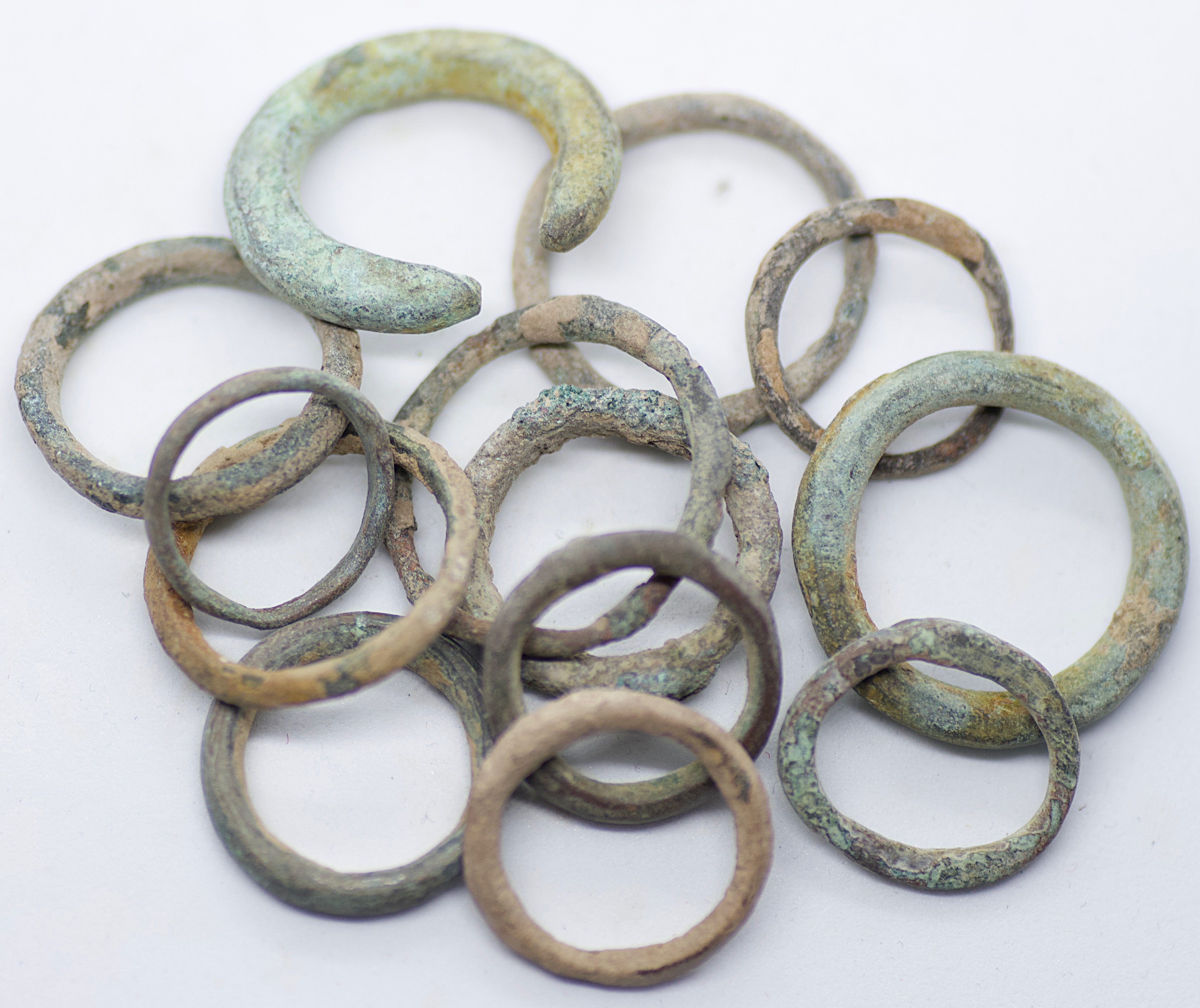 Group of 13 Bronze Ancient rings and earrings